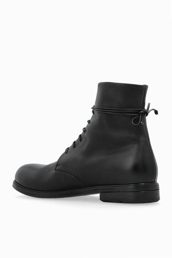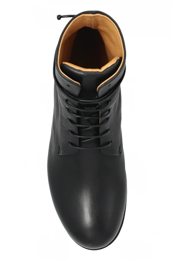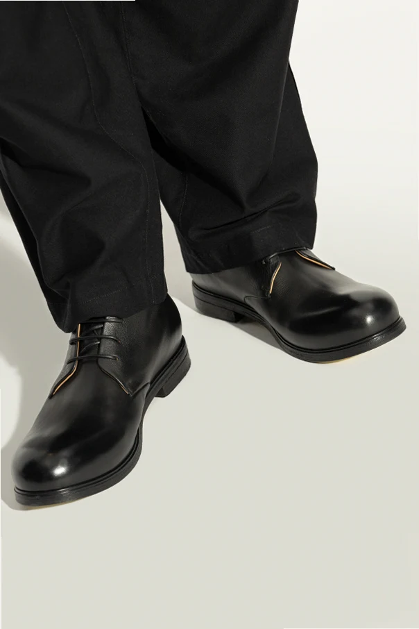 Gefertigt aus hochwertigem, glattem, schwarzem Leder, vereinen die Marsell-Schuhe Langlebigkeit mit zeitloser Eleganz. Schnürsenkel sorgen für eine perfekte Passform, und ein dekorativer Riemen oben am Schaft verleiht einen subtilen Stil.