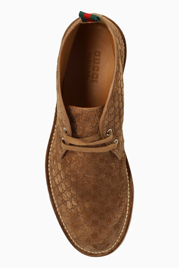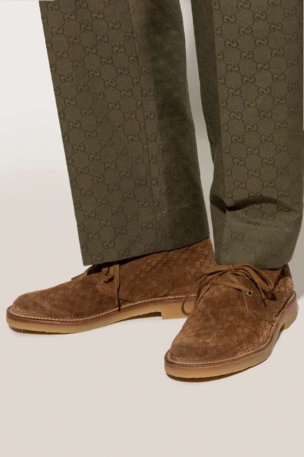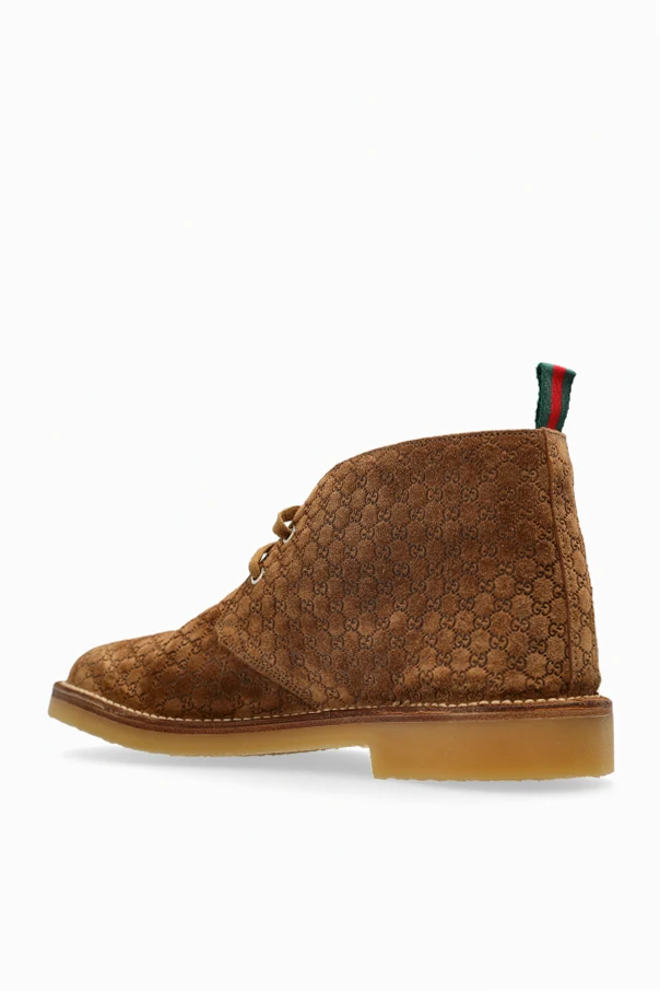 Wildleder-Stiefeletten sind ein Synonym für Raffinesse und ein eindrucksvoller Beweis für die exklusive Handwerkskunst von Gucci. Gefertigt aus hochwertigstem braunem Wildleder, bestechen sie durch ihre feine Textur sowie die zeitlose Chukka-Boots-Form – mit charakteristisch niedriger Schafthöhe und weich abgerundeter Kappe.
