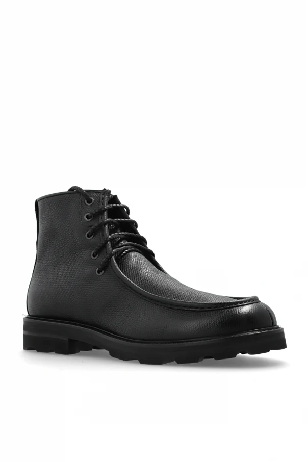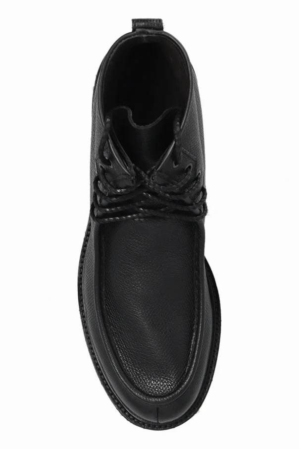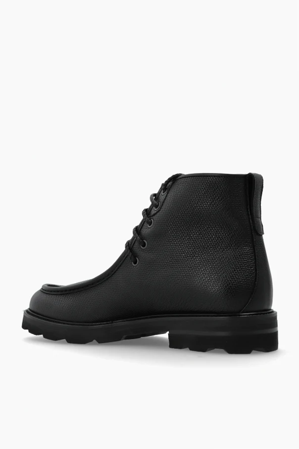 Leder-Stiefeletten von Brioni sind die Quintessenz italienischer Handwerkskunst und strahlen raffinierte Schlichtheit sowie zeitlosen Stil aus. Der präzise geschnürte, über den Knöchel reichende Schaft aus hochwertigem, glattem Naturleder mit feiner, geprägter Struktur unterstreicht dezent den luxuriösen Charakter dieses Schuhwerks. Die minimalistische Form in tiefem Schwarz, frei von überflüssigen Verzierungen, harmoniert mit der abgerundeten Schuhspitze und der markant profilierten, massiven Laufsohle aus strapazierfähigem Gummi.