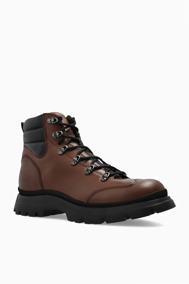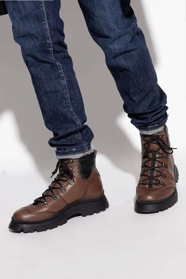 Das Innere des Schuhs ist mit weichem Leder sowie Material ausgekleidet, was für außergewöhnlichen Tragekomfort sorgt. Auf der Innensohle befindet sich das kunstvolle Markenlogo, das dezent auf die exklusive Herkunft des Produkts hinweist. Diese Schuhe beeindrucken durch sicheren Halt rund um den Knöchel sowie die geschmackvolle Schlichtheit des braunen Farbtons, die durch Details in tiefem Schwarz akzentuiert wird.