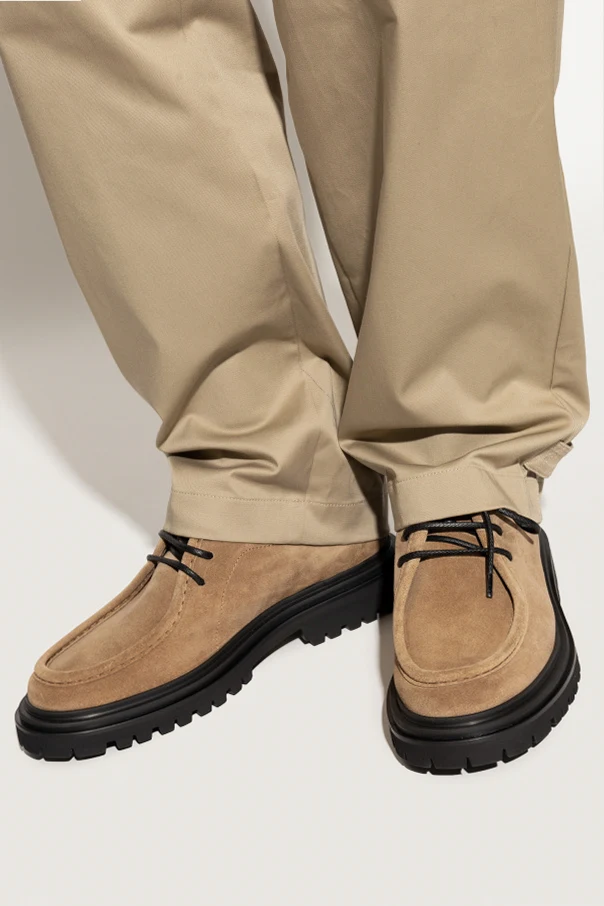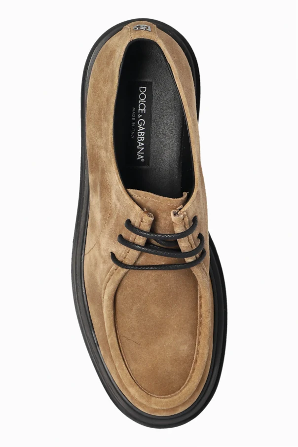 Wildleder-Schuhe von Dolce & Gabbana sind ein raffiniertes Angebot für den modernen Mann, der zeitlose Eleganz mit einem Hauch moderner Ausdruckskraft schätzt. Das beige Obermaterial aus hochwertigem Kalbsvelours begeistert mit einer dezenten, matten Textur. Die klassische, abgerundete Zehenform und der leicht erhöhte Schaft zeigen die Kunstfertigkeit und Präzision italienischer Handwerkskunst.