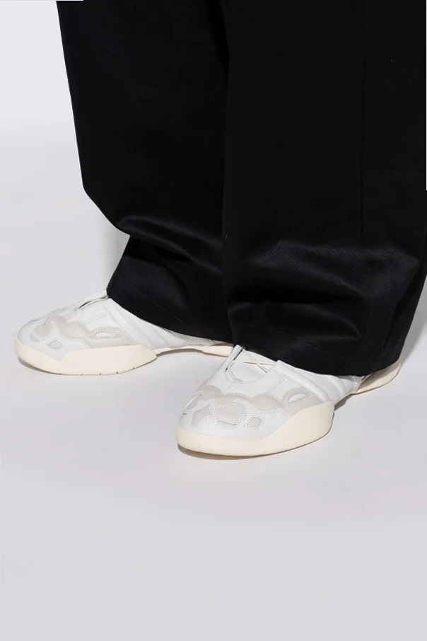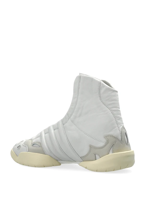 Sport-Sneaker über dem Knöchel ‘Regu 2002 HI’ sind eine außergewöhnliche Synthese aus Avantgarde und handwerklicher Kunstfertigkeit. Sie bieten einen beeindruckend erhöhten High-Top-Schaft, der den Fuß präzise umschließt und die dynamische Silhouette des Schuhs betont. Makelloses Weiß edlen Glattleders dominiert, harmonisch kontrastiert durch subtile Textil- und Veloursledereinsätze in hellen Grau- und Beigetönen.
