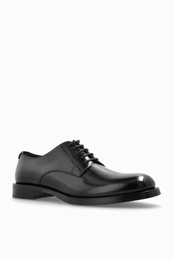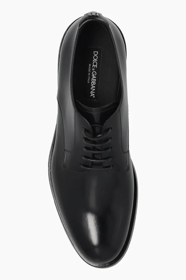 Das sorgfältig gestaltete, klassische Schnürsystem mit vier Ösen auf jeder Seite betont den formellen Charakter des Schuhs. Die matte Ledersohle mit elegantem Absatz rundet das Gesamtbild harmonisch ab, während das sichtbare „DOLCE & GABBANA“-Logo die Authentizität und das Prestige des Designs bestätigt.