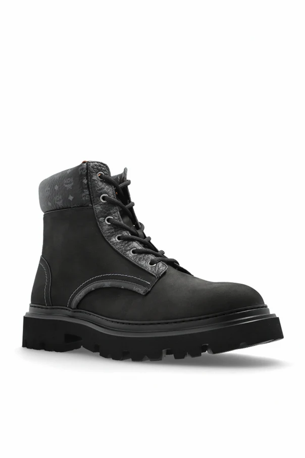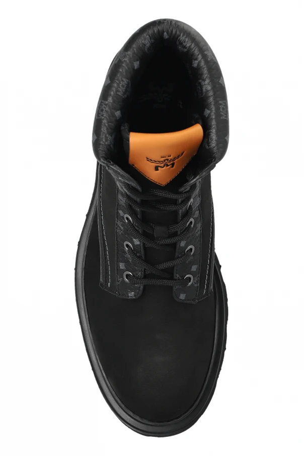 Besonders ins Auge fällt der mit dem wiederkehrenden Monogramm des Designers verzierte Kragen sowie die harmonisch integrierten, funktionalen Nähte. Metallösen und schwarze Schnürsenkel unterstreichen die Robustheit dieser Schuhe. Auf der Zunge befindet sich das ausdrucksstarke MCM-Logo – ein Zeichen für die Authentizität und Einzigartigkeit dieses Modells.