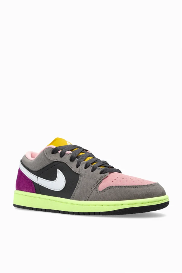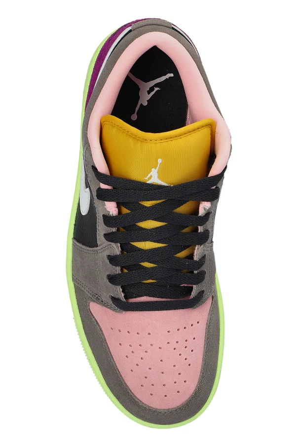 Air Jordan 1 Low Sneaker ist eine meisterhafte Komposition aus Modernität und Klassik, entworfen von dem legendären Designer der Marke Nike. Das Modell besticht durch seine charakteristische, geformte Low-Top-Silhouette, bei der die mehrfarbige Farbpalette zu einem unbestrittenen Vorteil wird: zartes Pastellrosa trifft auf intensives Violett, leuchtendes Gelb sowie weiße Details, ergänzt durch eine grüne Sohle mit neonartigem Effekt. Das präzise gefertigte Obermaterial aus hochwertigem Leder, das komfortable Innenfutter und die flexible Gummisohle garantieren Langlebigkeit, Bequemlichkeit und einen einzigartigen Stil für jeden Anlass.