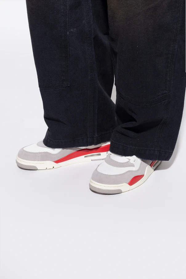 Das Obermaterial besteht aus einer harmonischen Kombination von Leder, Wildleder und hochwertigem Mesh – das hellgraue Wildleder durchbricht das Weiß und sorgt für einen außergewöhnlichen Ausdruck. Für ein angenehmes Tragegefühl sorgt das weiche, textile Innenfutter, während die dynamische Gummisohle jeden Schritt unterstützt. An der Ferse befindet sich ein großes, rotes NIKE AIR Logo, das den exklusiven Charakter der Marke Nike eindrucksvoll hervorhebt.