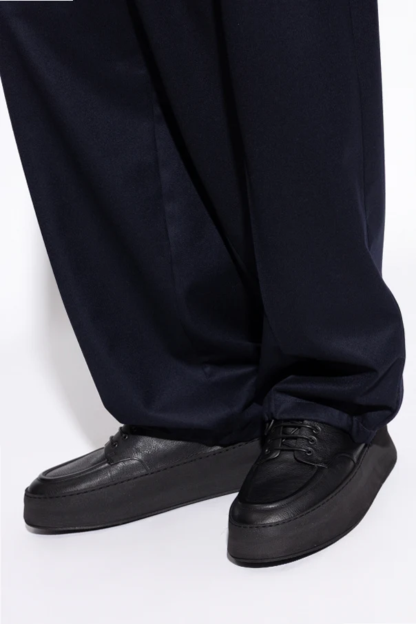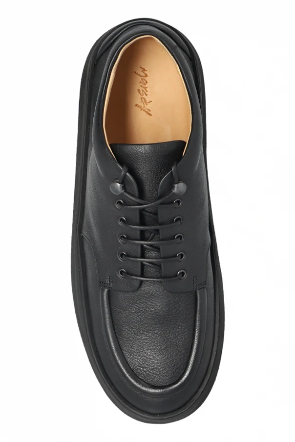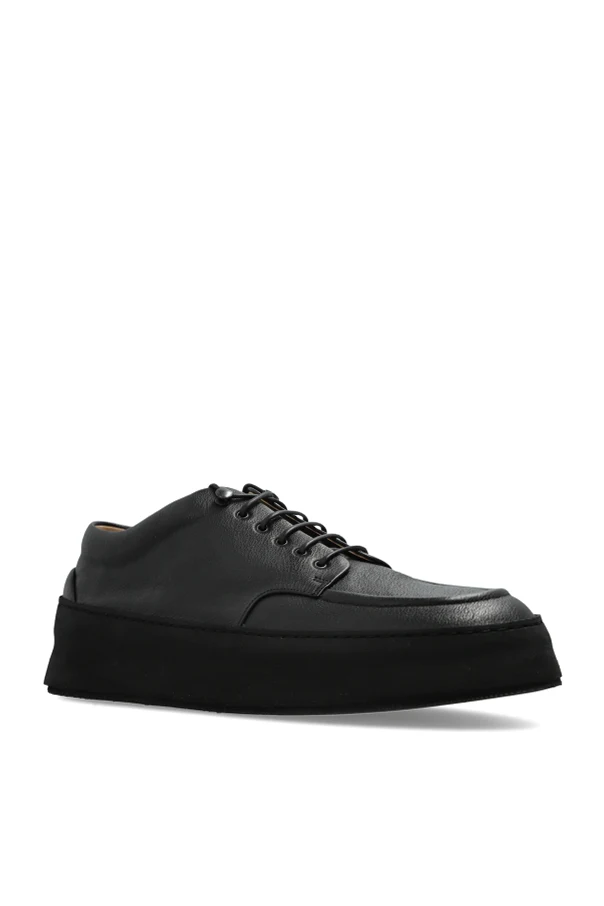 Die außergewöhnlichen Leder-Schuhe „Cassapana” von Marsell sind die Essenz raffinierten Minimalismus und zeitgenössischer Eleganz. Die klassische Derby-Form mit abgerundeter Schuhspitze wird durch die markant verstärkte Sohle ergänzt, die dem Gesamtbild einen modernen Charakter verleiht. Die schwarze Farbe betont die vollkommene Harmonie der Form sowie die Vielseitigkeit des Stils.