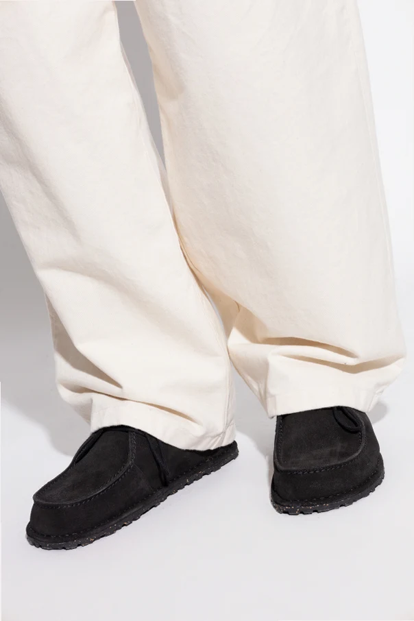 Das Innere der Schuhe ist mit zartem Leder gefüttert, was für ein außergewöhnliches Tragegefühl sorgt. Die massive, langlebige Gummisohle garantiert Stabilität, selbst für die anspruchsvollsten Träger. Das dezente, geprägte Logo an der Ferse ist eine Hommage an die legendäre Geschichte der Marke Birkenstock und ihre innovative Philosophie.