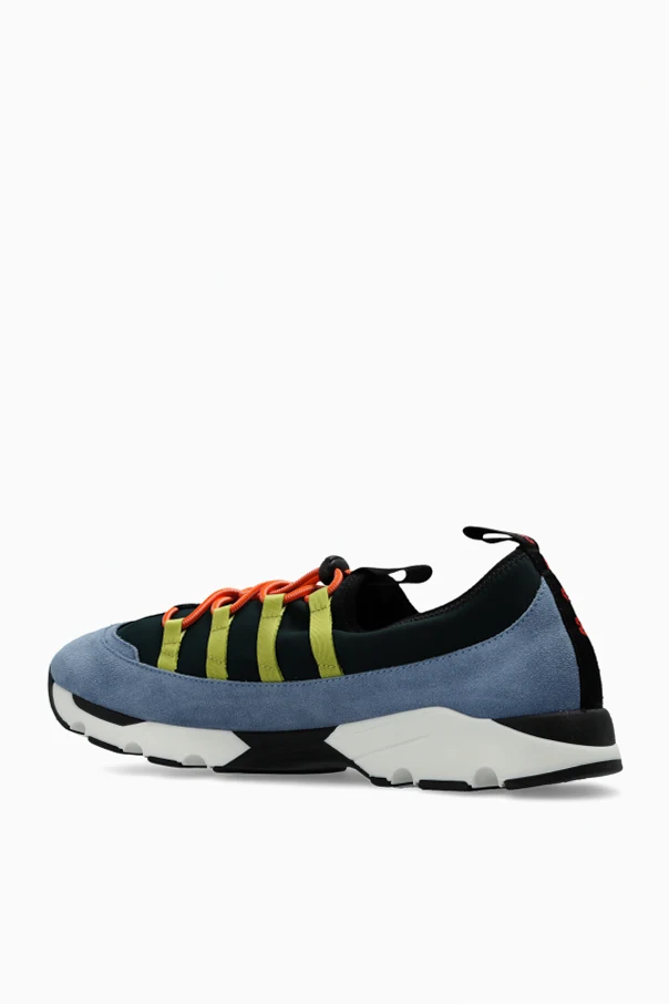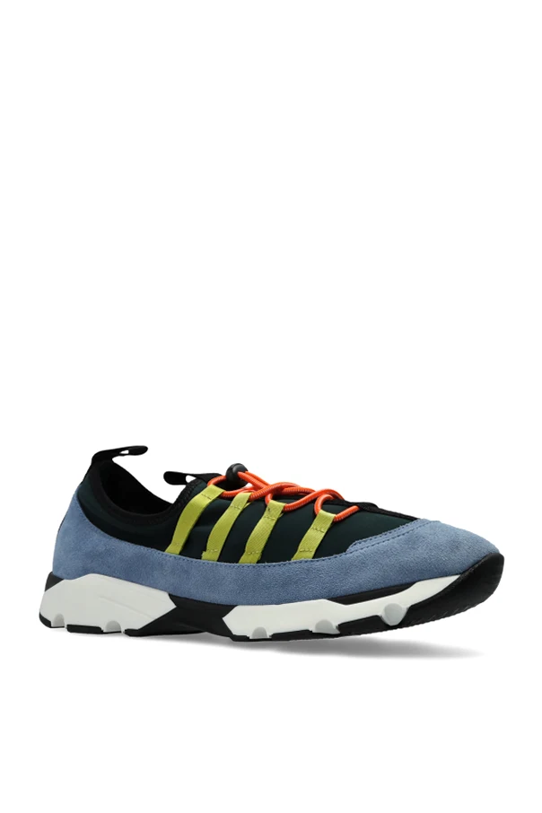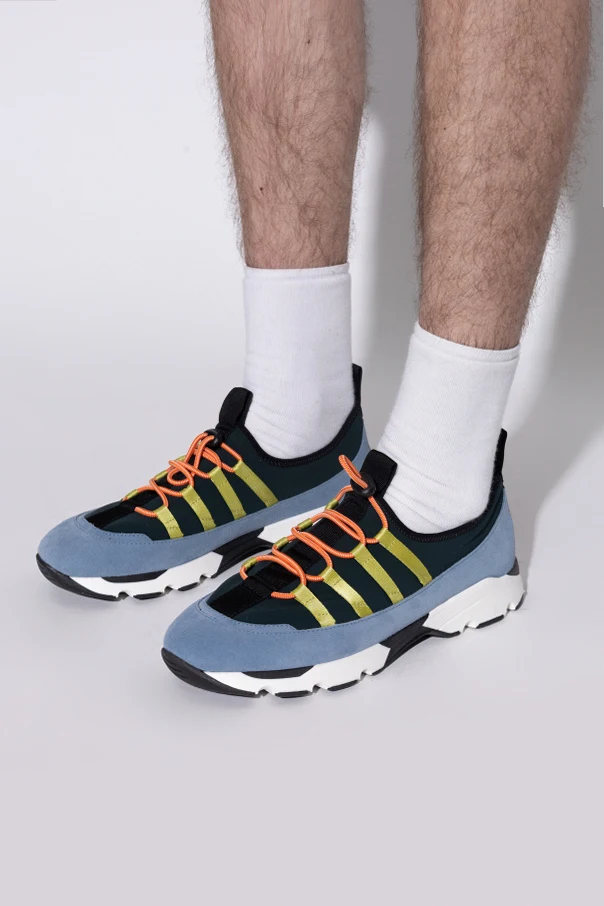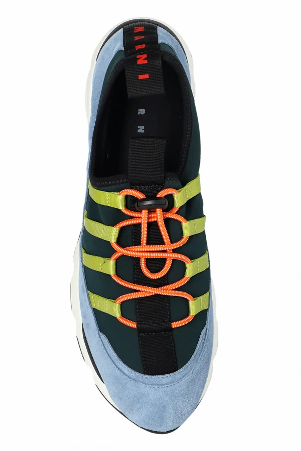 Sportschuhe mit Logo der Marke Marni verkörpern die Essenz modernen Stils für anspruchsvolle Modekenner. Dieses Modell besticht durch eine mutige, multifarbige Komposition, die eine harmonische Fusion aus blauem Veloursleder, dunkelgrünem Textil sowie Akzenten in Schwarz, Gelbgrün und Orange darstellt. Die Kombination ausgewählter Materialien – edles Naturleder , ausgefeilte Stoffe und eine robuste Gummisohle – garantiert einen unvergleichlichen Tragekomfort und Langlebigkeit.