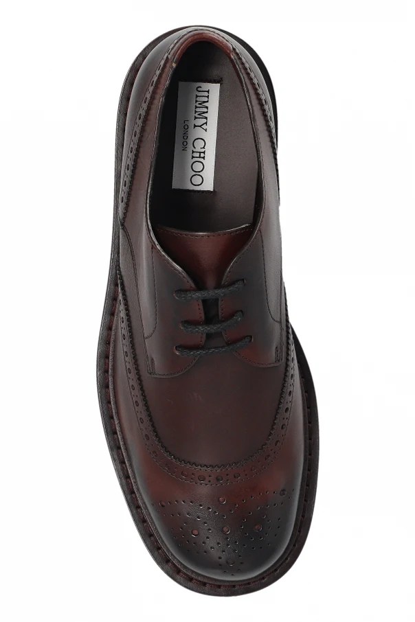 Rowan Brogue Derby-Schuhe aus der renommierten Jimmy Choo Kollektion verkörpern unvergleichliche Eleganz und gelten als Meisterwerk klassischer Schuhmacherkunst. Sie bestechen durch ihre zeitlose Form, eine verlängerte Schuhspitze und die markant gestaltete offene Schnürung, die dem Modell Leichtigkeit und Perfektion im Erscheinungsbild verleiht.
