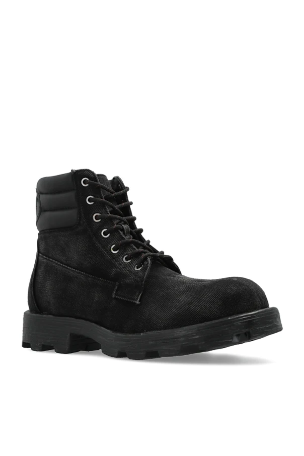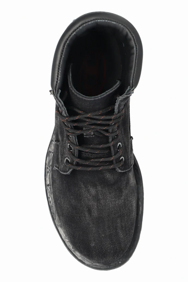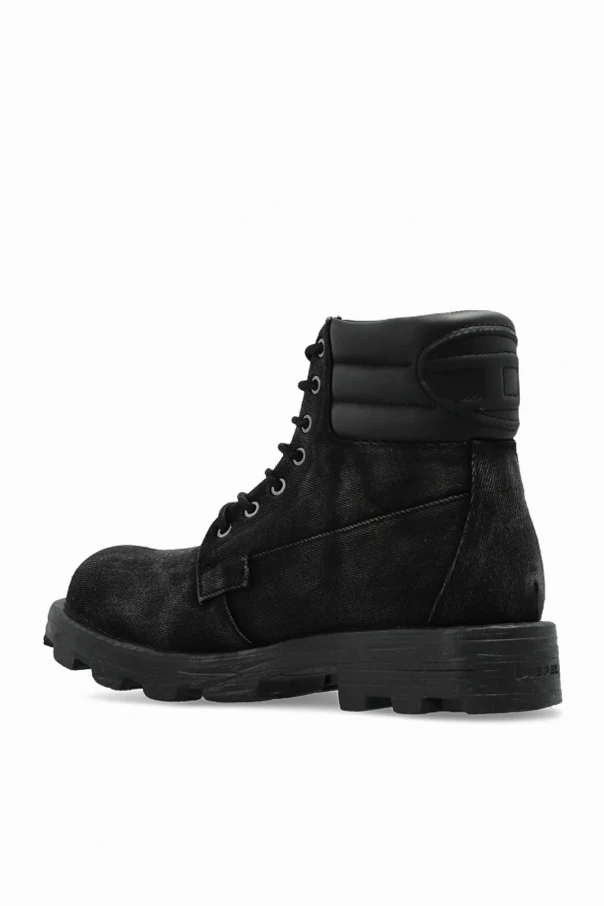 D-HAMMER LACE UP Stiefeletten von Diesel sind die Essenz zeitloser Klassik, meisterhaft eingefangen in einer markanten Form, die von traditionellen Arbeitsstiefeln inspiriert ist. Die robuste, über den Knöchel reichende Silhouette unterstreicht perfekt den Charakter des Schuhs, während die solide Sohle mit deutlich ausgeprägtem Profil zuverlässigen Halt auf jedem Untergrund garantiert.