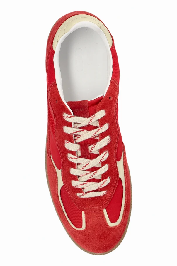 Sportliche Schuhe Tb.490 Rife sind die perfekte Verbindung aus klassischem Stil und raffinierter Eleganz, entworfen für anspruchsvolle Kenner der Ästhetik. Die dominierende rote Farbe, ergänzt durch beige, wellenförmige Details und Schnürsenkel, unterstreicht dezent ihren individuellen Charakter.