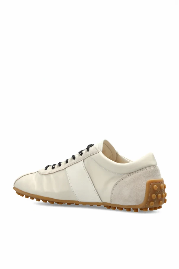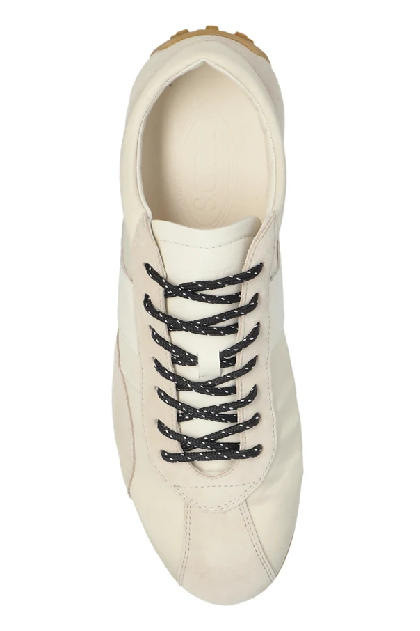 Sportiva-Sneaker von Tod’s sind eine exquisite Verbindung von sportlichem Geist und klassischer Raffinesse. Ihre schlanke, sorgfältig geformte Low-Top-Silhouette mit abgerundeter Zehenkappe schmiegt sich harmonisch an den Fuß an und bietet außergewöhnlichen Komfort sowie ein anspruchsvolles Erscheinungsbild. Das Obermaterial in einem cremigen Farbton beeindruckt durch das raffinierte Zusammenspiel von glattem, glänzendem Leder und mattem Veloursleder an Zehenkappe und Ferse.