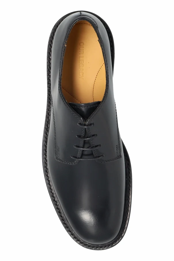 Lederschuhe der Marke Our Legacy sind ein Synonym für zeitlose Eleganz und maskulinen Stil. Das präsentierte Modell in schwarz zeichnet sich durch den klassischen Derby-Schnitt mit leicht abgerundeter Spitze und einer harmonischen Silhouette aus – ideal sowohl für formelle als auch für halbformelle Outfits. Die makellose Ästhetik der Schuhe resultiert aus dem minimalistischen Design: Die einheitliche, glatte Oberfläche des hochwertigen Glattleders glänzt mit dezentem Schimmer und ist frei von überflüssigen Verzierungen.
