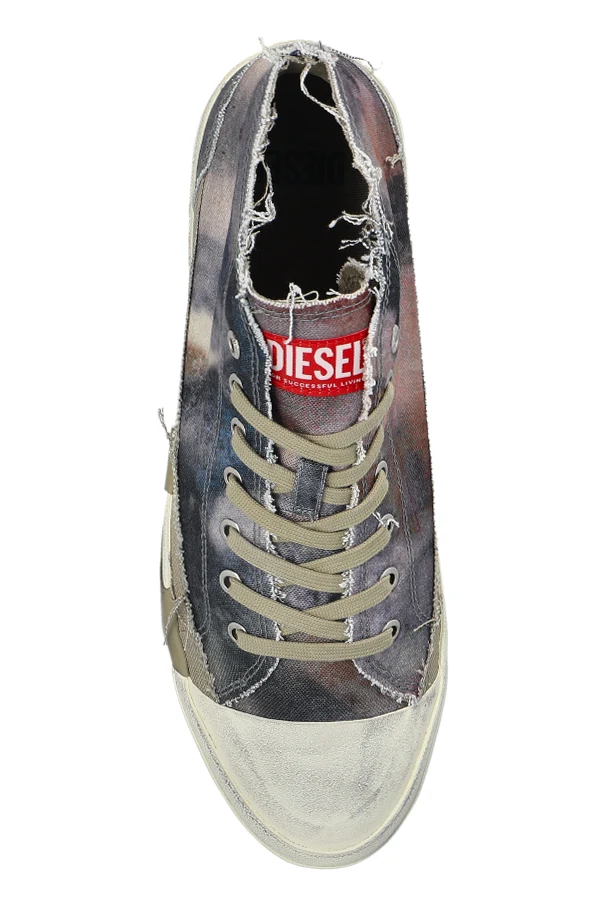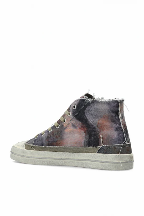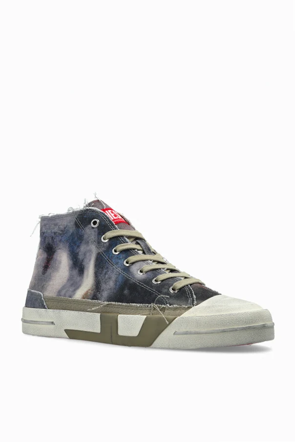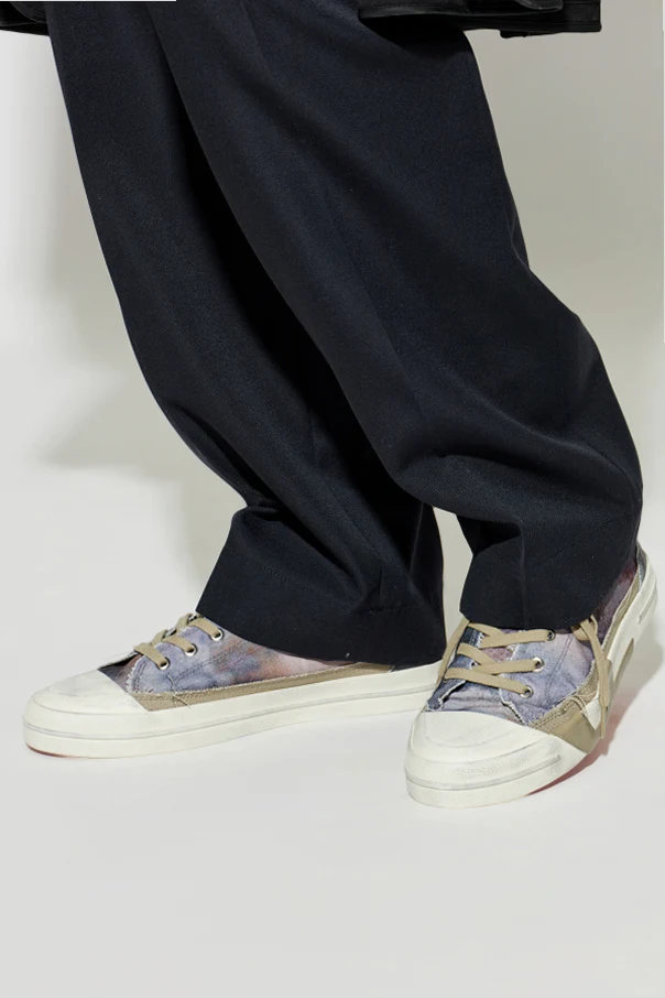 Das aquarellähnliche Muster mit grafischen Grautönen und kontrastierenden Details zieht alle Blicke auf sich und unterstreicht die Individualität des Trägers. Der besondere Charakter dieses Modells wird durch einen auffälligen Diesel-Logo-Patch verstärkt, der mittig auf der Zunge platziert ist.