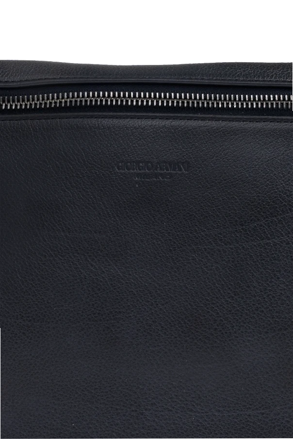 Die Lederhandtasche von Giorgio Armani strahlt raffinierte Eleganz aus, die dezent durch die marineblaue Farbe unterstrichen wird. Ihre rechteckige, minimalistische Form mit sanft abgerundeten Ecken schafft eine zeitlose Silhouette – ideal für den modernen Mann, der Wert auf Ästhetik und Funktionalität legt.