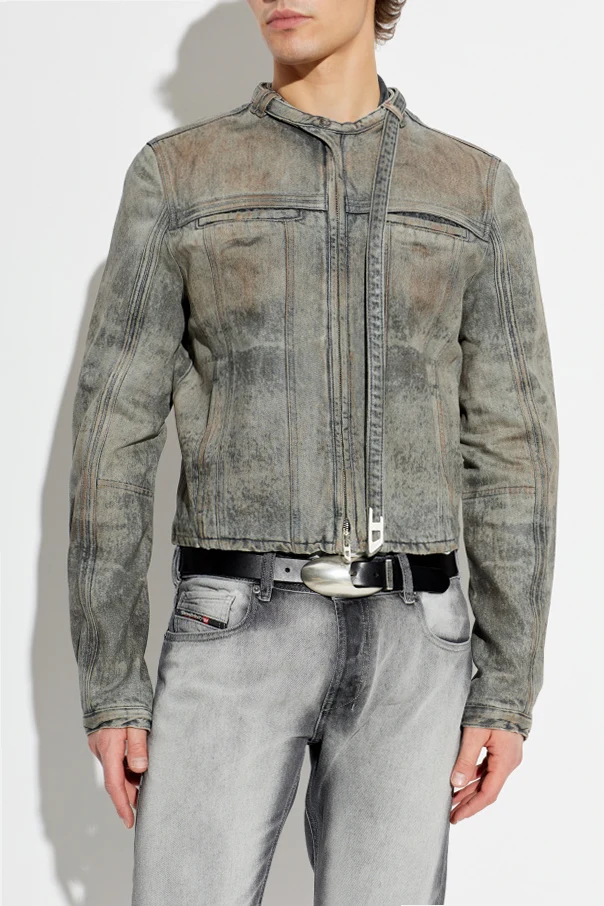 Jeansjacke ‘D-VULMAR-FSI’ von Diesel ist der Inbegriff zeitloser Eleganz in moderner Ausführung. Das Modell besticht durch eine figurbetonte, leicht verkürzte Passform sowie einen geraden Saum, der die Silhouette harmonisch betont. Gefertigt aus Denim mit einem Zusatz aus Hanffaser, überzeugt sie mit einer grau-braunen Farbgebung. Der authentische Used-Effekt, markante Abriebspuren und das „Washed Effect“-Finish verleihen ihr einen außergewöhnlichen, rauen Charakter.