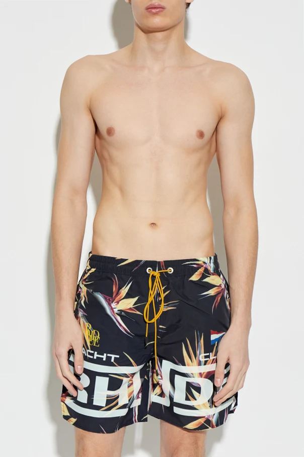 Bedruckte Badeshorts der Marke Rhude sind ein erlesenes Angebot für Kenner zeitloser Eleganz in sportlicher Ausführung. Die klassische Form der kurzen Shorts mit regular Fit und lockerem Bein, das oberhalb des Knies endet, garantiert uneingeschränkte Bewegungsfreiheit.