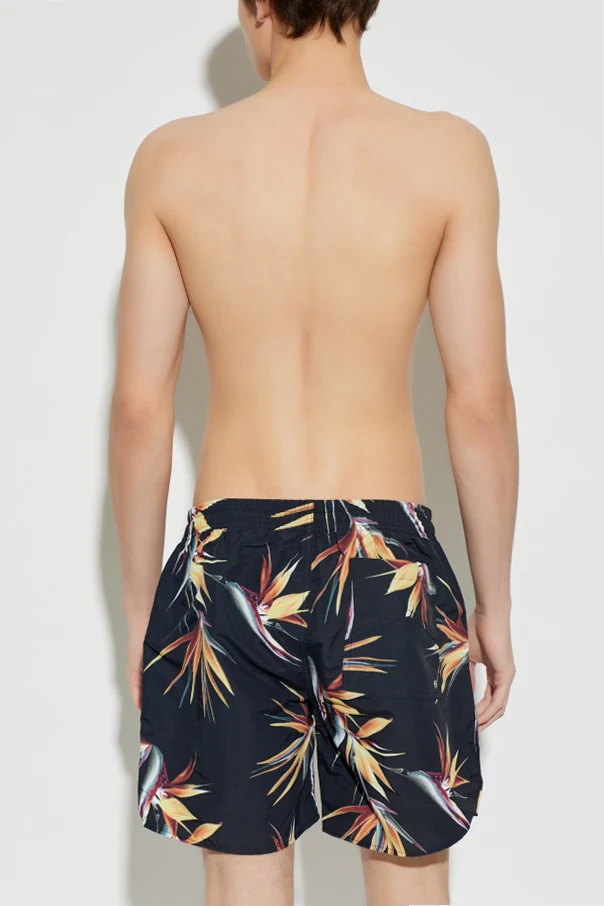 Aus meisterhaft ausgewähltem, schnelltrocknendem Nylon gefertigt, eignen sich die Shorts perfekt für das tägliche Baden sowie für Reisen und gewährleisten Komfort selbst bei intensiver Nutzung. Die Oberfläche wird von einem effektvollen, mehrfarbigen Print exotischer Blätter in Orange-, Gelb- und Grüntönen auf schwarzem Hintergrund geziert, was jedes Detail zu einem einzigartigen Ausdruck raffinierten Stils macht.