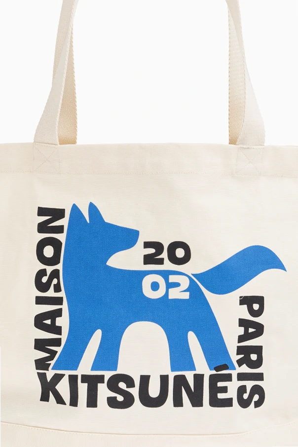 Die exklusive Shopper-Tasche von Maison Kitsuné ist eine raffinierte Verbindung aus Pariser Eleganz und modernem Design. Ihre klassische, rechteckige Form in Cremeton harmoniert perfekt mit der markanten, geometrischen Fuchssilhouette in leuchtendem Blau, die von den prestigeträchtigen Schriftzügen „MAISON“, „KITSUNÉ“, „PARIS“ sowie der detaillierten Zahl „2002“ umrahmt wird.