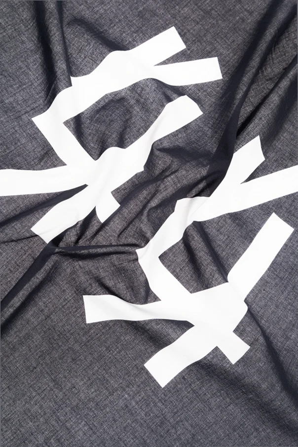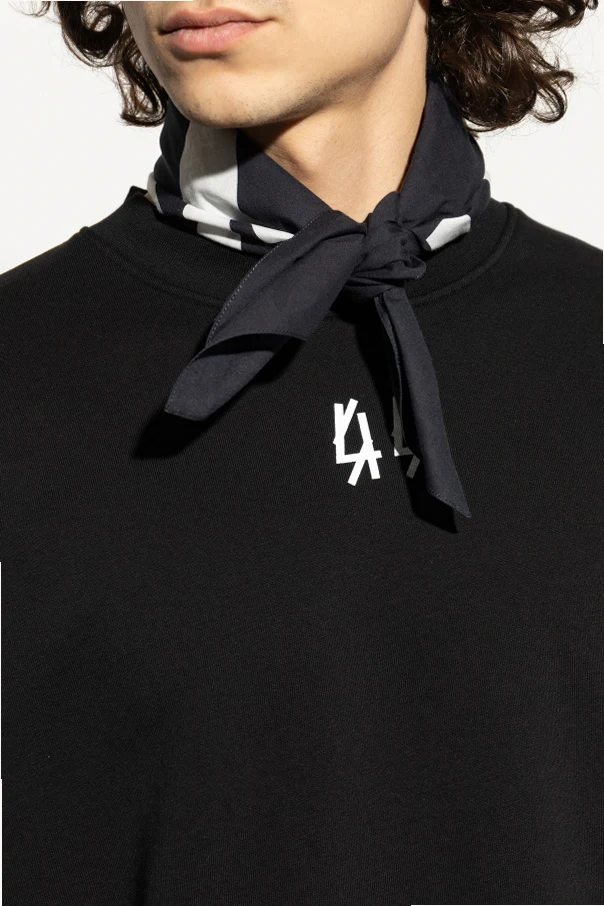 Logo-Tuch der Marke 44 Label Group ist die ideale Wahl für Liebhaber hochwertigster Accessoires. Dieses raffinierte, quadratische Tuch besticht durch sein tiefes Schwarz, auf dem ein großes, weißes, geometrisches Print – das einzigartige Logo des Designers – besonders hervortritt und dieses Modell unter anderen Accessoires heraushebt. Das asymmetrisch platzierte Muster unterstreicht den modernen, minimalistischen Charakter des gesamten Designs.