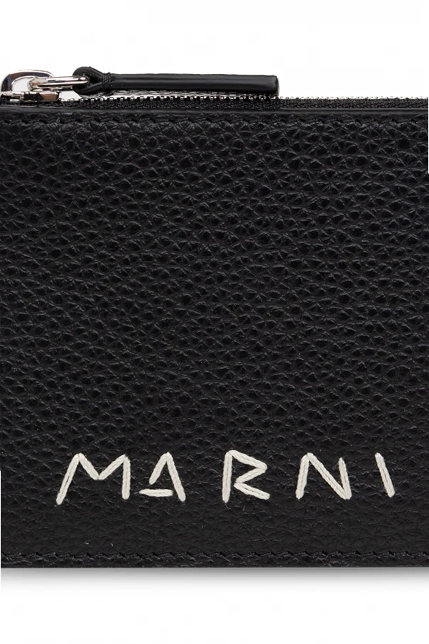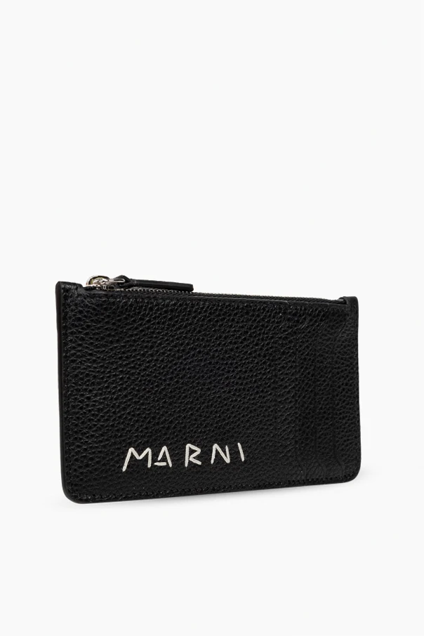 Wir präsentieren Ihnen die Quintessenz von Eleganz und Funktionalität – das Leder-Kartenetui von Marni . Gefertigt aus höchstqualitativem Kalbsleder , begeistert es mit seiner körnigen Textur und minimalistischem Design. Die schwarze Farbe des Etuis, kombiniert mit dem dezent platzierten, weißen Designer-Logo auf der Vorderseite, verleiht diesem Accessoire einen universellen Charakter, perfekt sowohl für Damen als auch für Herren.