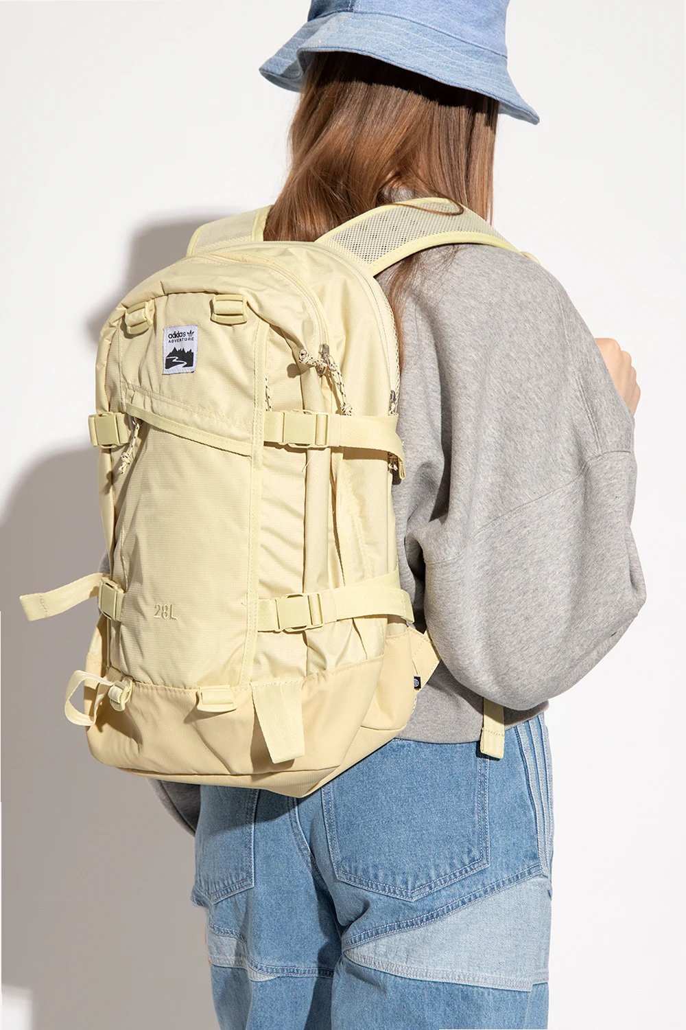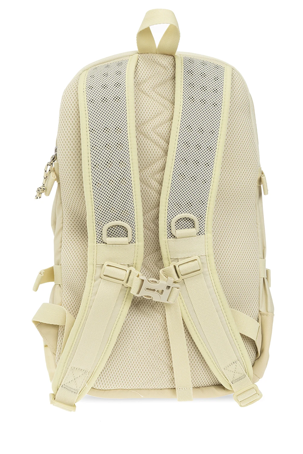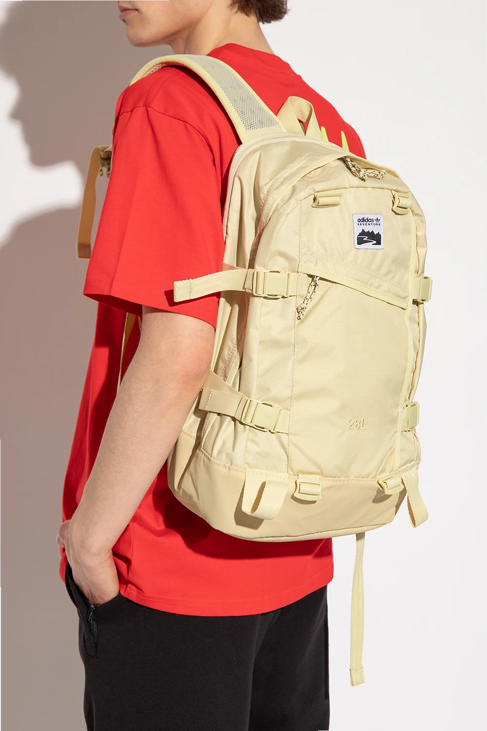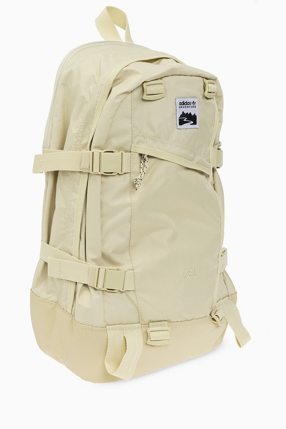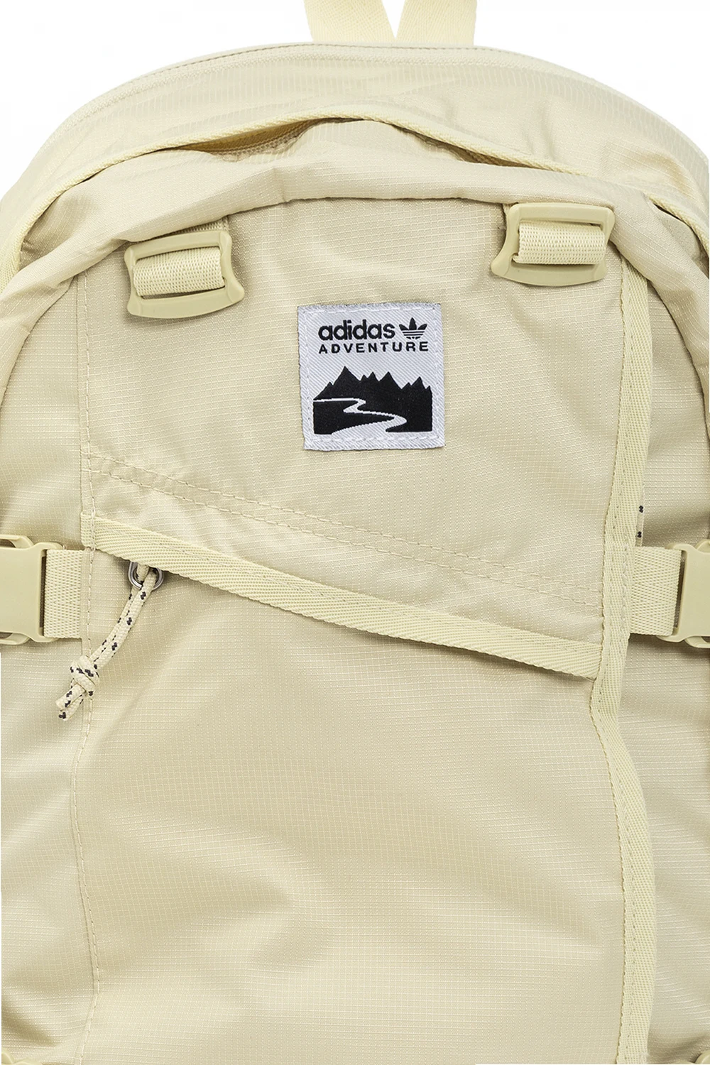 Light yellow backpack from ADIDAS Originals, the ‘Adventure’ collection. Made of recycled ripstop fabric, this model features a zip fastening, snaps on the side, logo patch, two zip pockets, zipped laptop pocket at the back, half-round handle, adjustable shoulder straps, one internal compartment and silver-tone metal hardware.