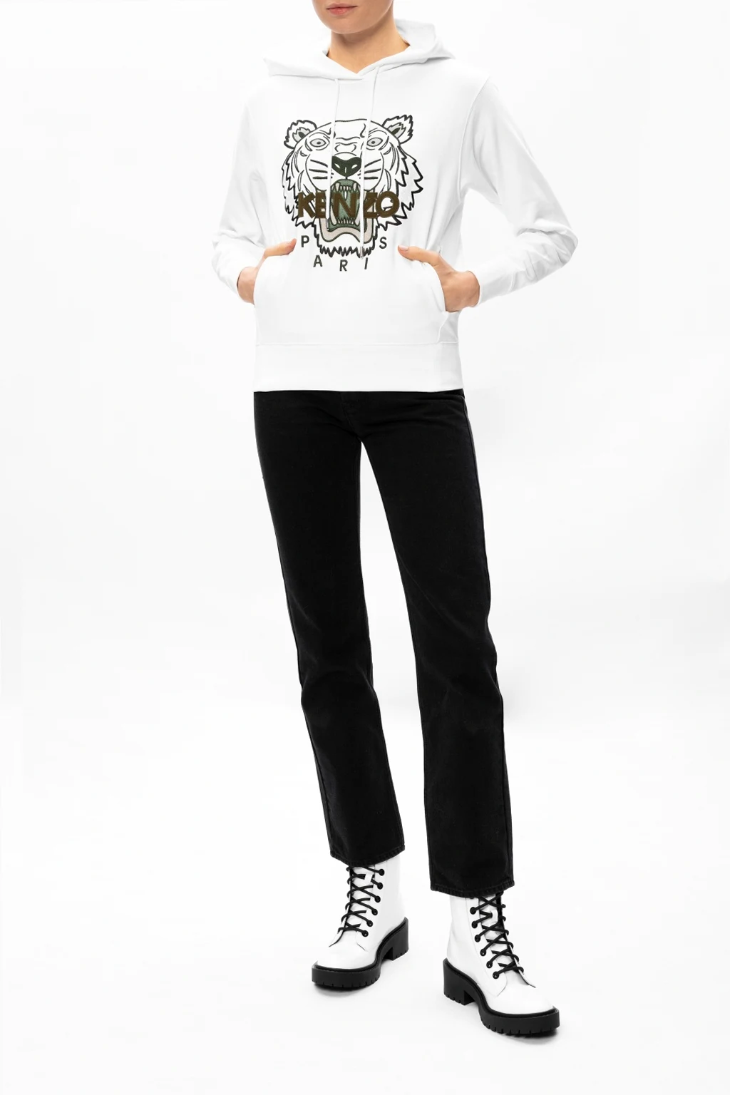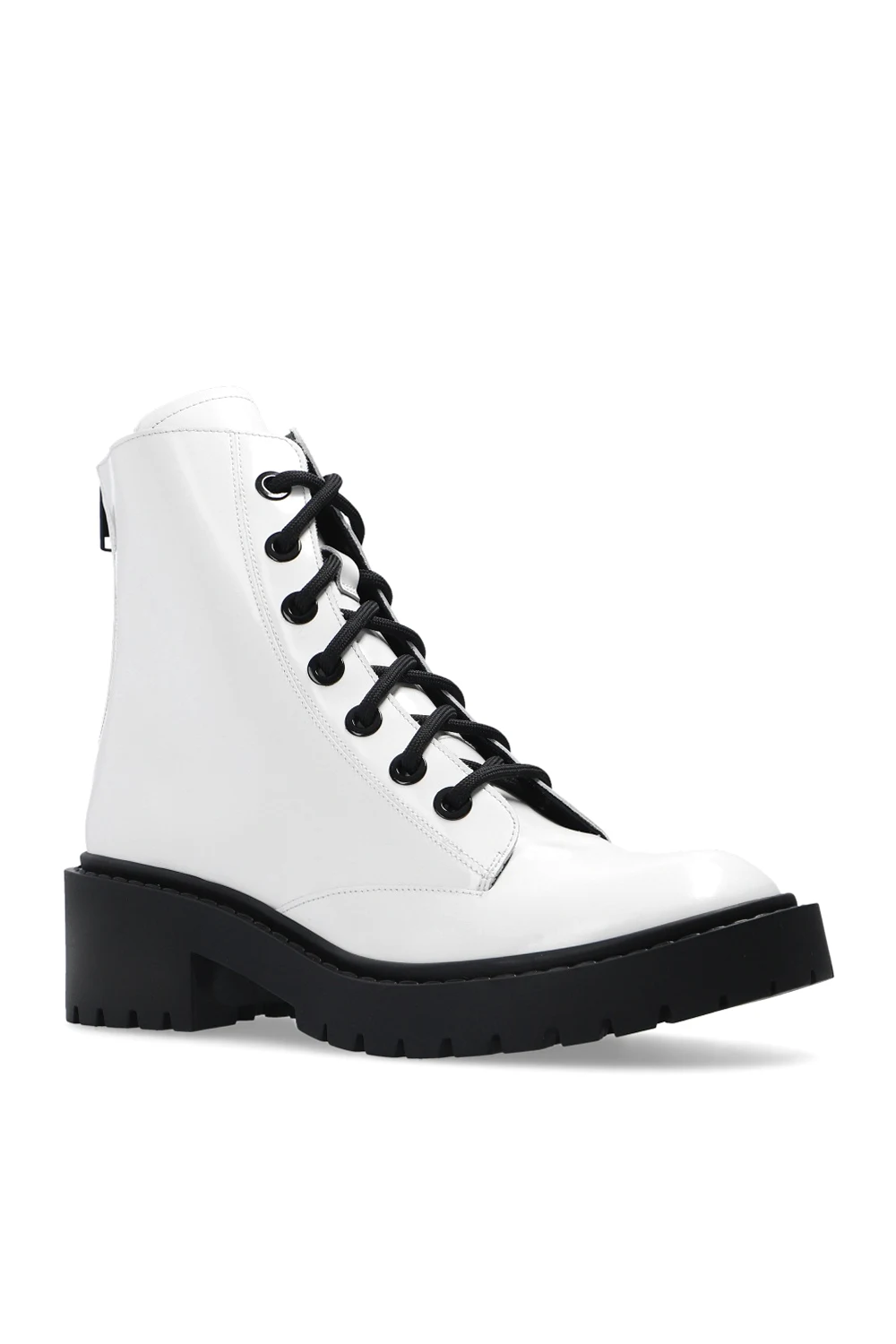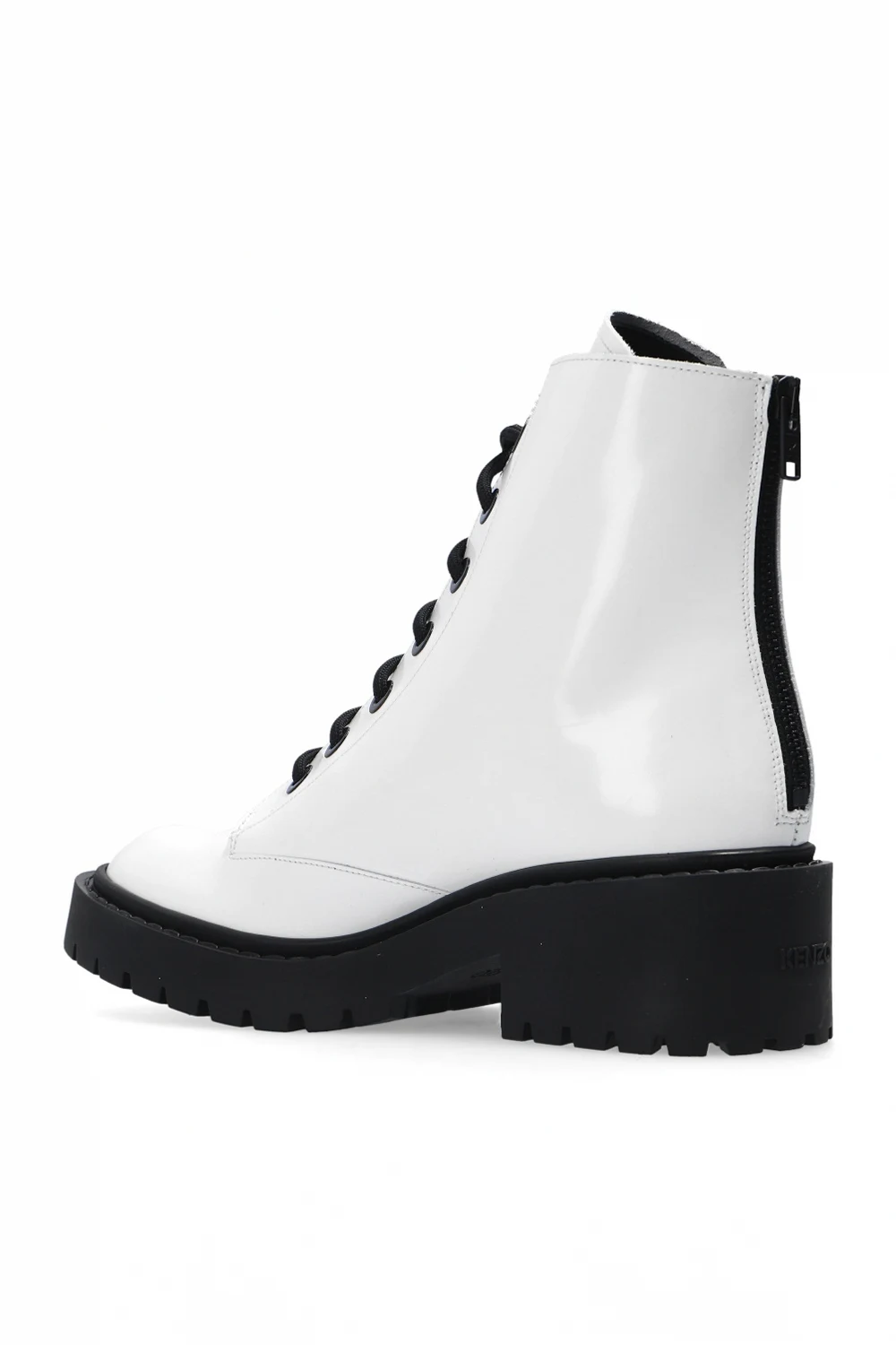 White ankle boots from Kenzo. Crafted from leather, this style features a zip fastening at the back and a black rubber sole.