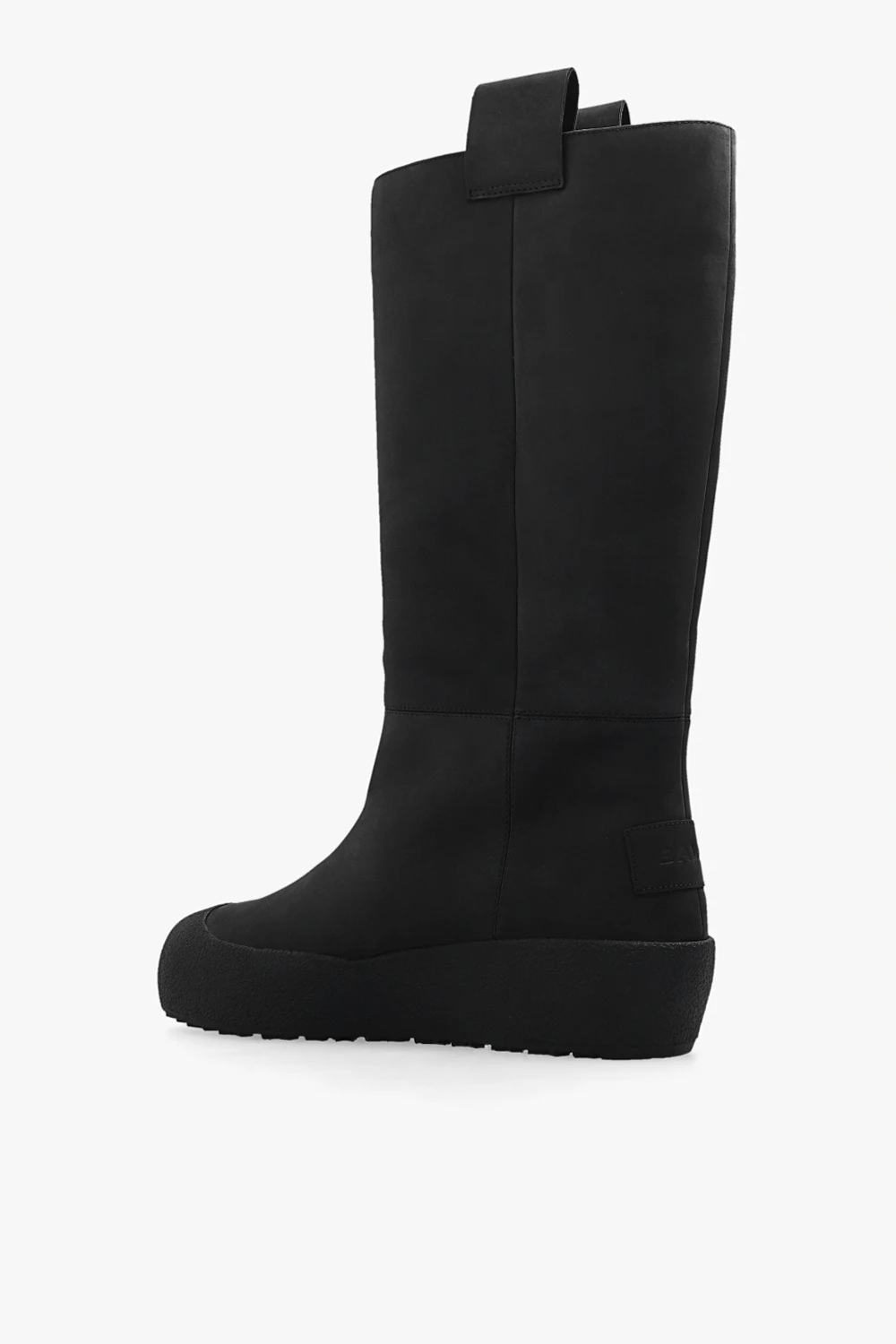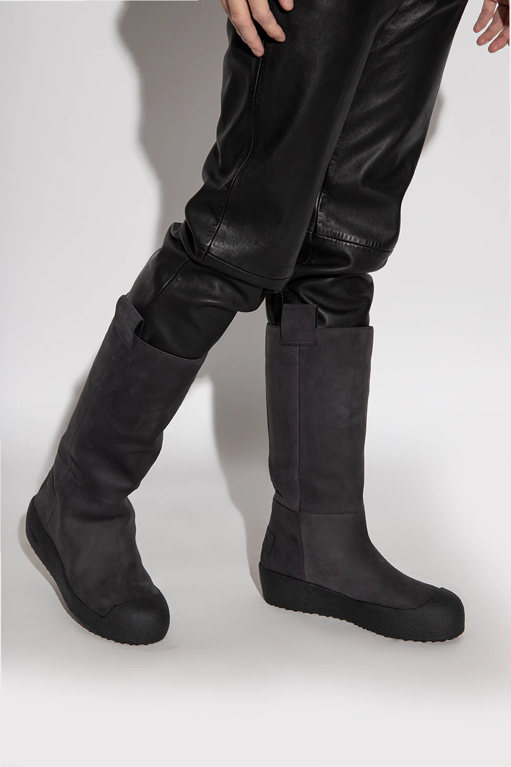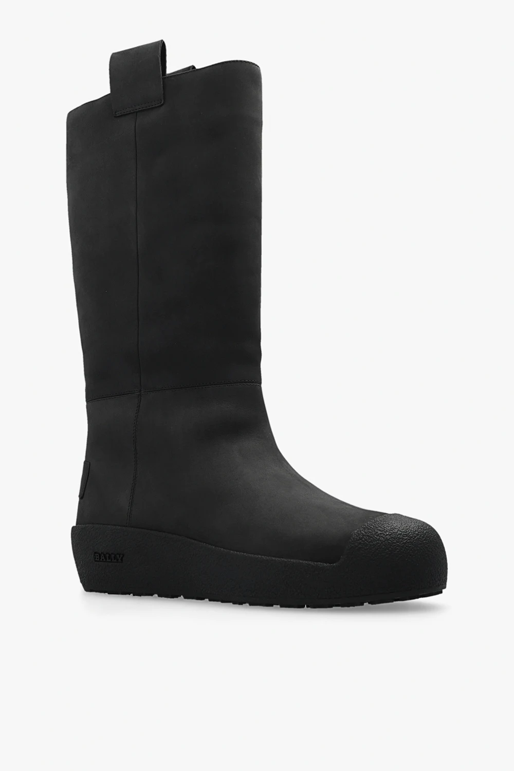 Black ‘Jackson’ snow boots from Bally. Crafted from leather, this model showcases a logo-embossed patch and a technical sole made up of five layers: shearling and cork layers which insulate from cold and provide added cushioning; EVA rubber gives added comfort; cotton fiber wadding is designed to add long-lasting durability and resistance; and the rubber Vibram® Arctic Grip sole is specifically engineered and designed to provide maximum grip on cold, iced or snowy surfaces.