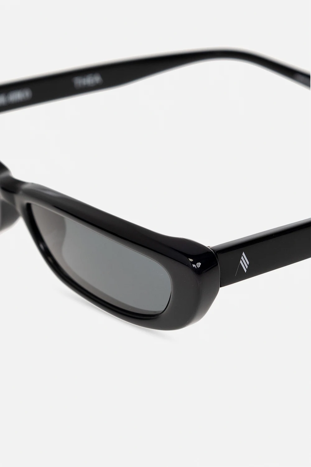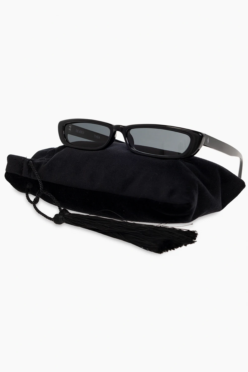 Black ‘Thea’ sunglasses from Linda Farrow x The Attico. Made of glossy acetate, this pair has rectangular frames with a single bridge and nose pads, wide temples with a silver-tone metal logo appliqué and grey lenses with 100% UV protection. Comes with a case.