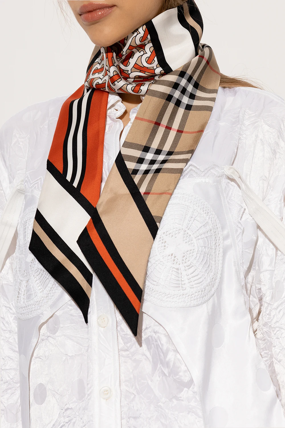 Multicoloured neckerchief from Burberry. Made of silk, this item showcases a monogram and the brand's signature check pattern.