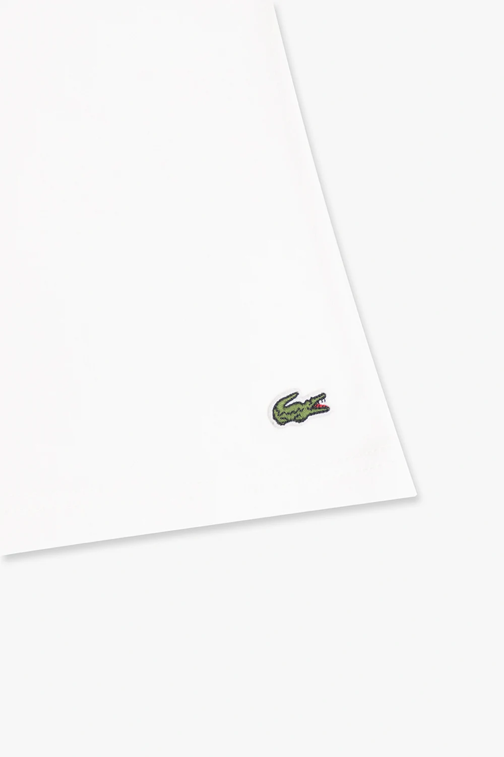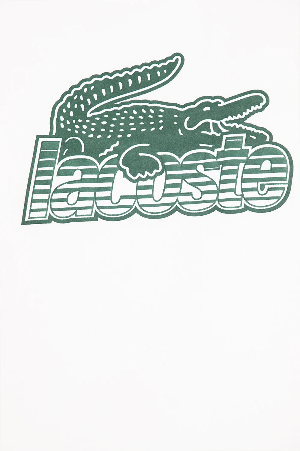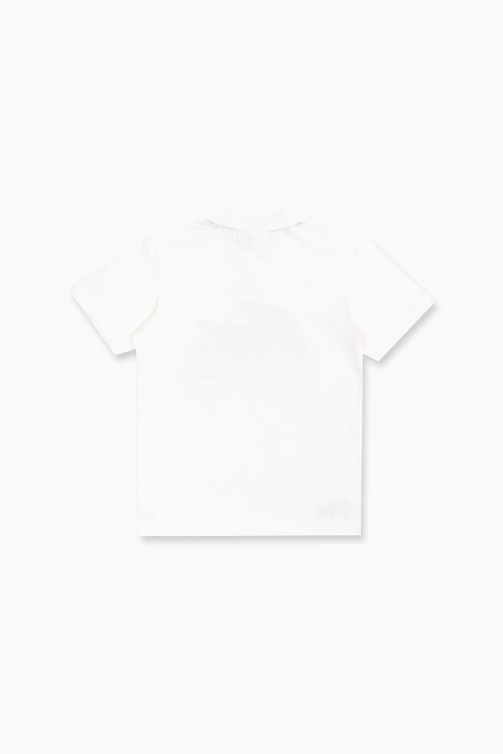 White crewneck T-shirt from Lacoste Kids. Made of cotton, this style features a green logo print, short sleeves and a ribbed collar.