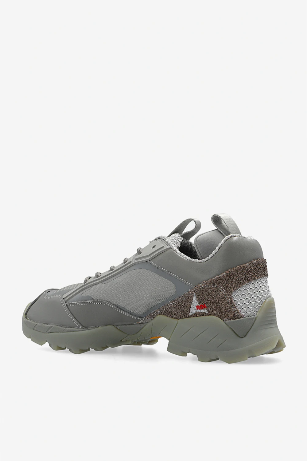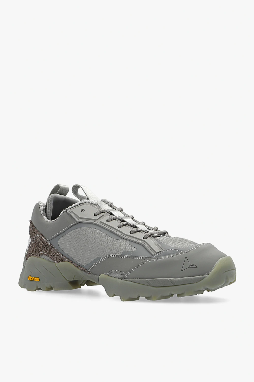Grey ‘Lhakpa’ sneakers from ROA. Crafted from panelled mesh and textured rubber, this lace-up model sits on a grey Vibram® rubber sole and features an embroidered logo, a printed logo, reflective elements and pull tabs on the tongue and back.