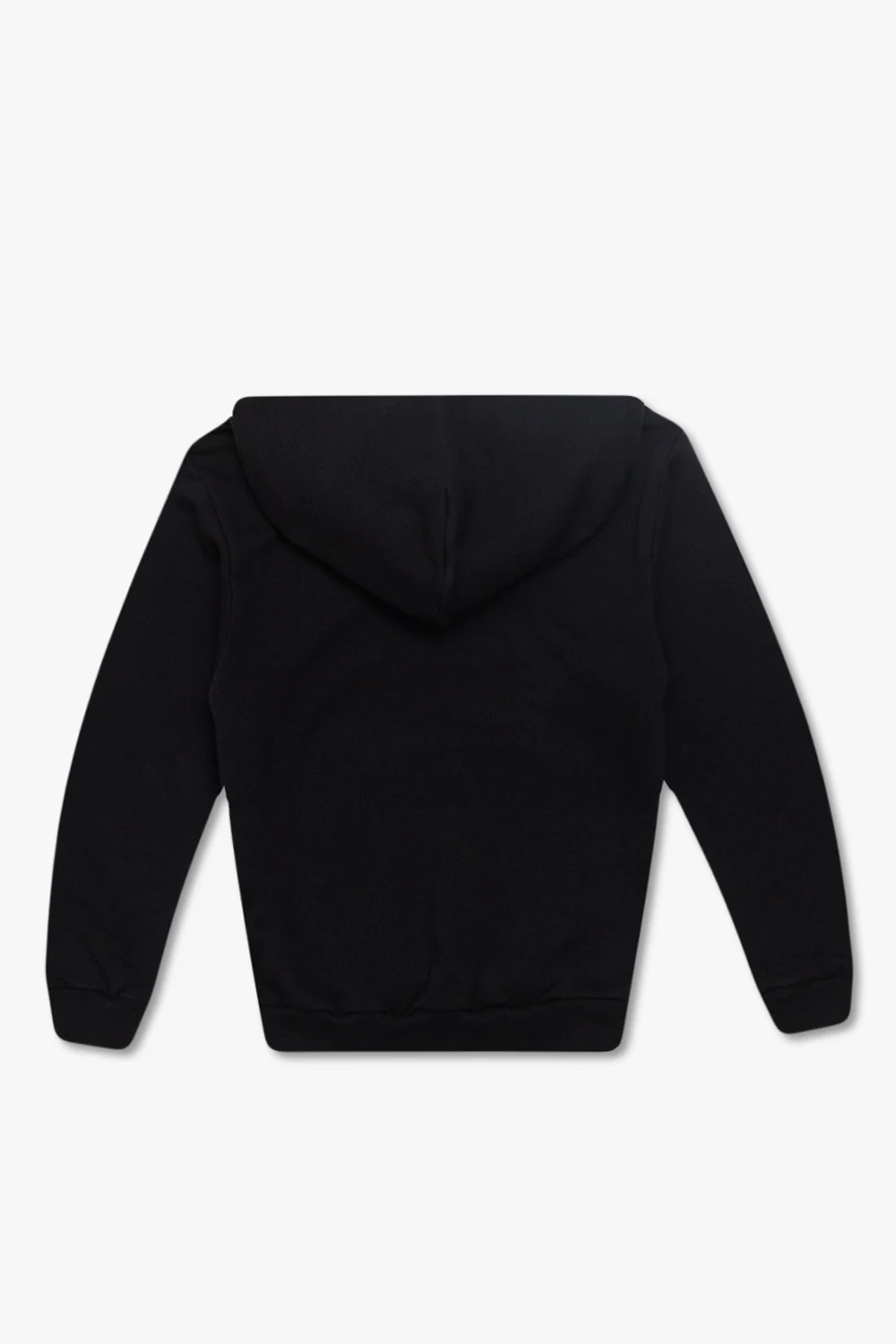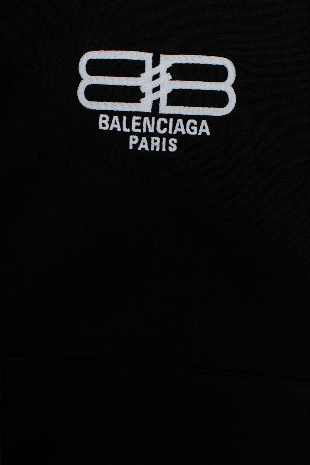 Black hoodie from Balenciaga Kids. Crafted from cotton jersey, this style features white embroidery with the brand's logo lettering on the front and ribbed trims on the bottom hem and cuffs.