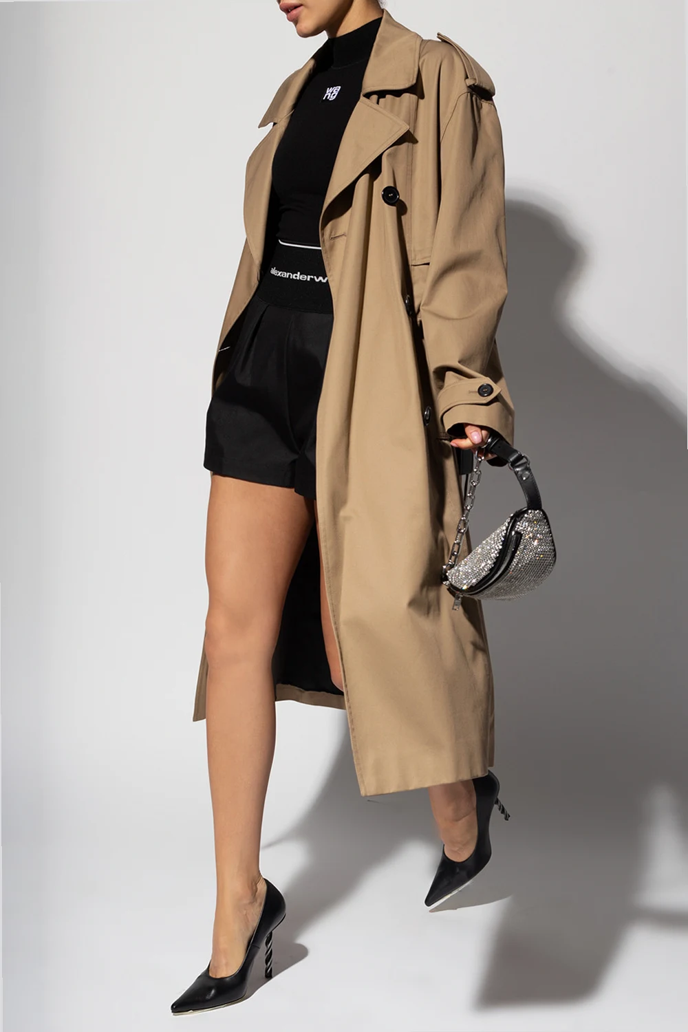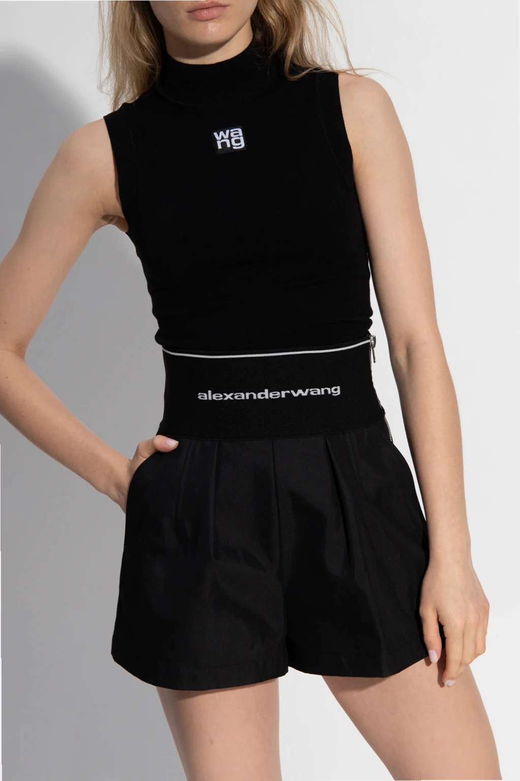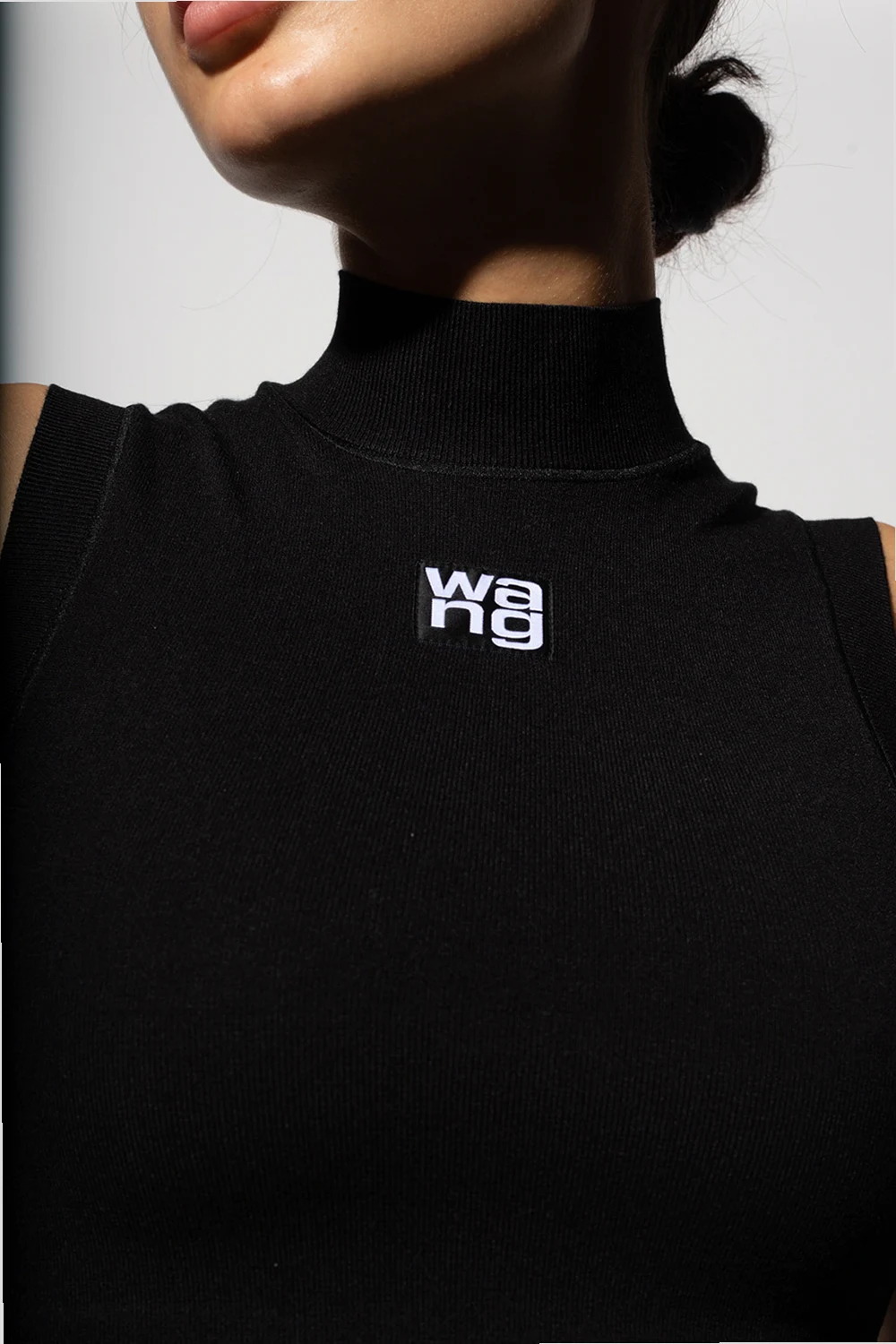 Black tank top from Alexander Wang. Crafted from stretch knit, this style features a mock neck and a logo patch on the front.