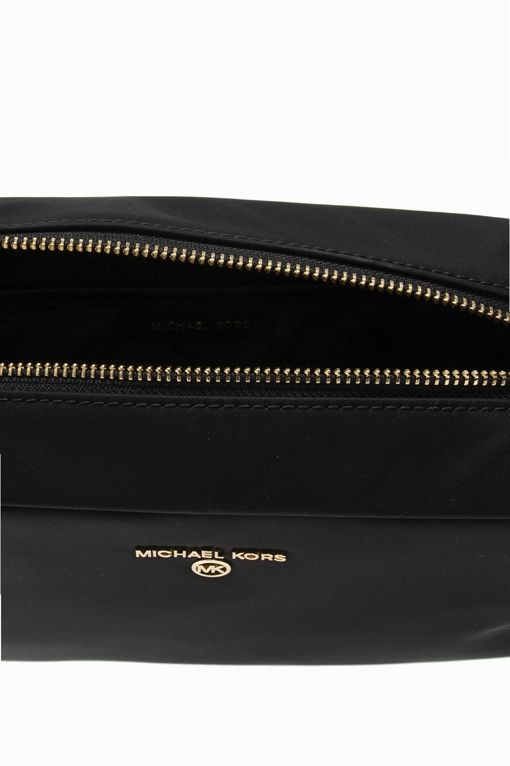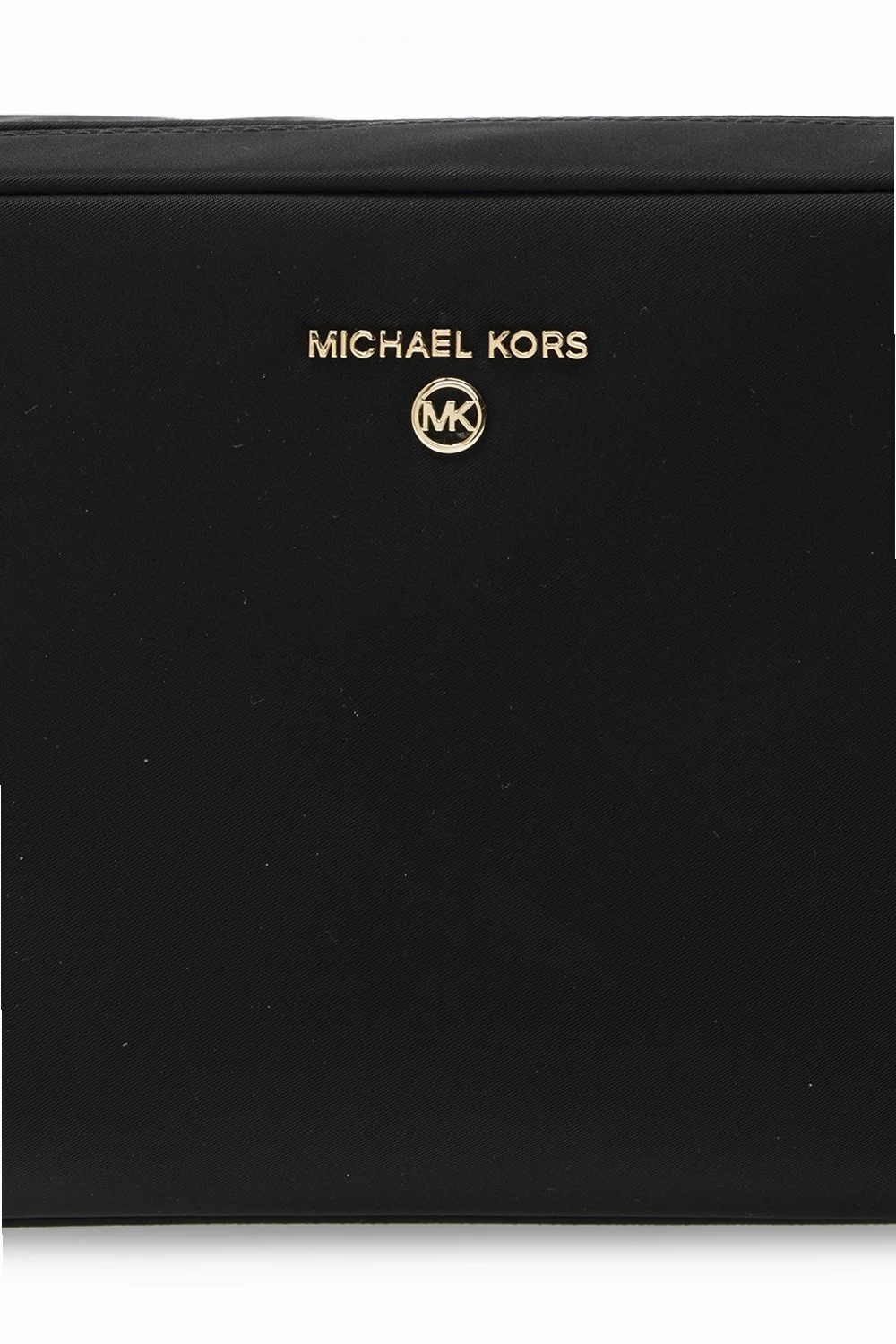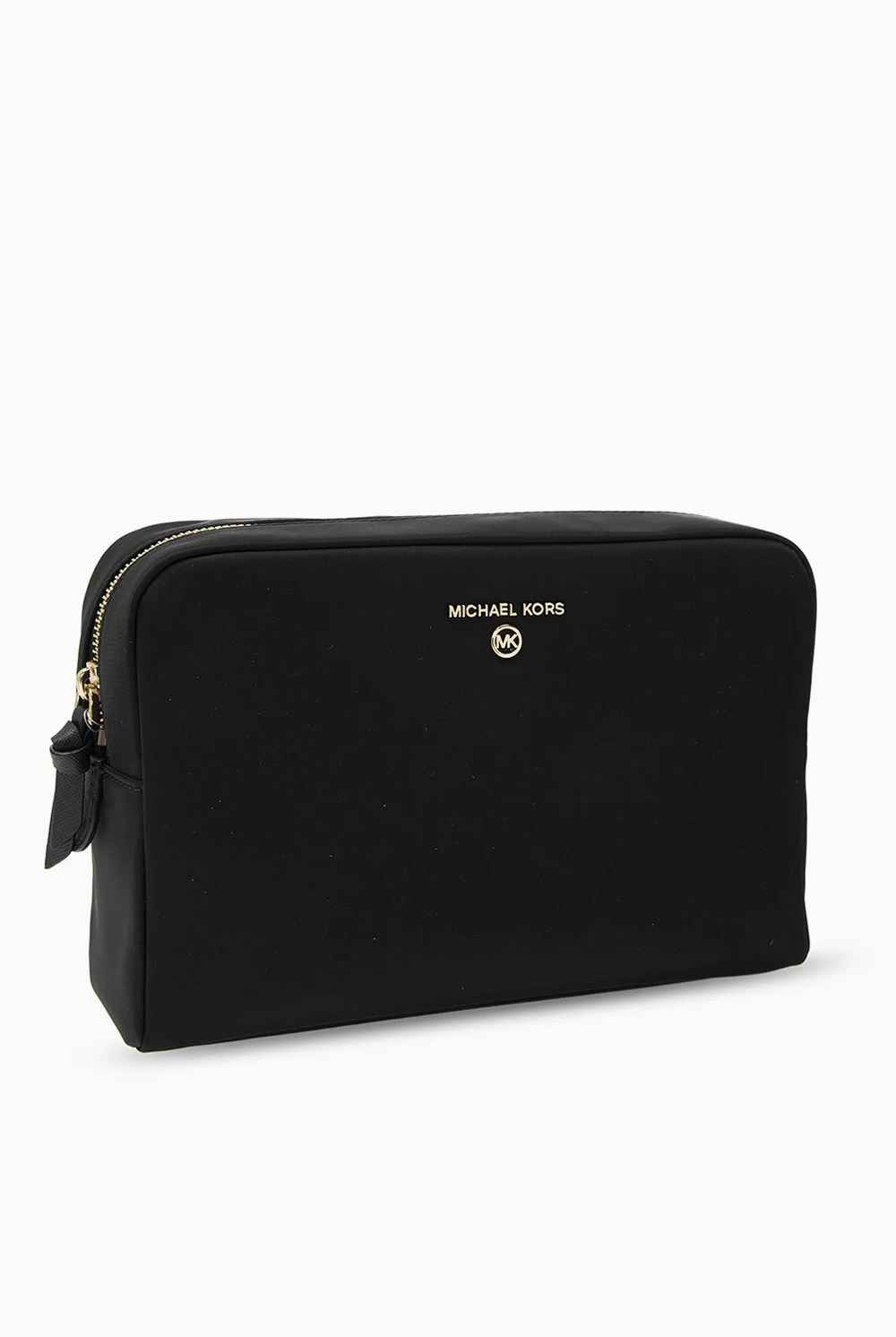 Black wash bag from Michael Michael Kors. Fastened with a zip, this item features gold-tone metal hardware, a logo appliqué and one internal compartment.
