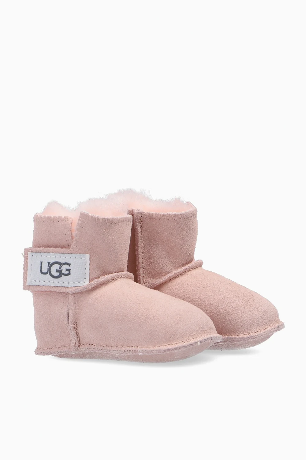 Light pink 'Erin' boots from UGG Kids. Crafted from suede, this pair is set on a suede sole and features wool lining, distinctive stitching details and a grey and white logo patch.