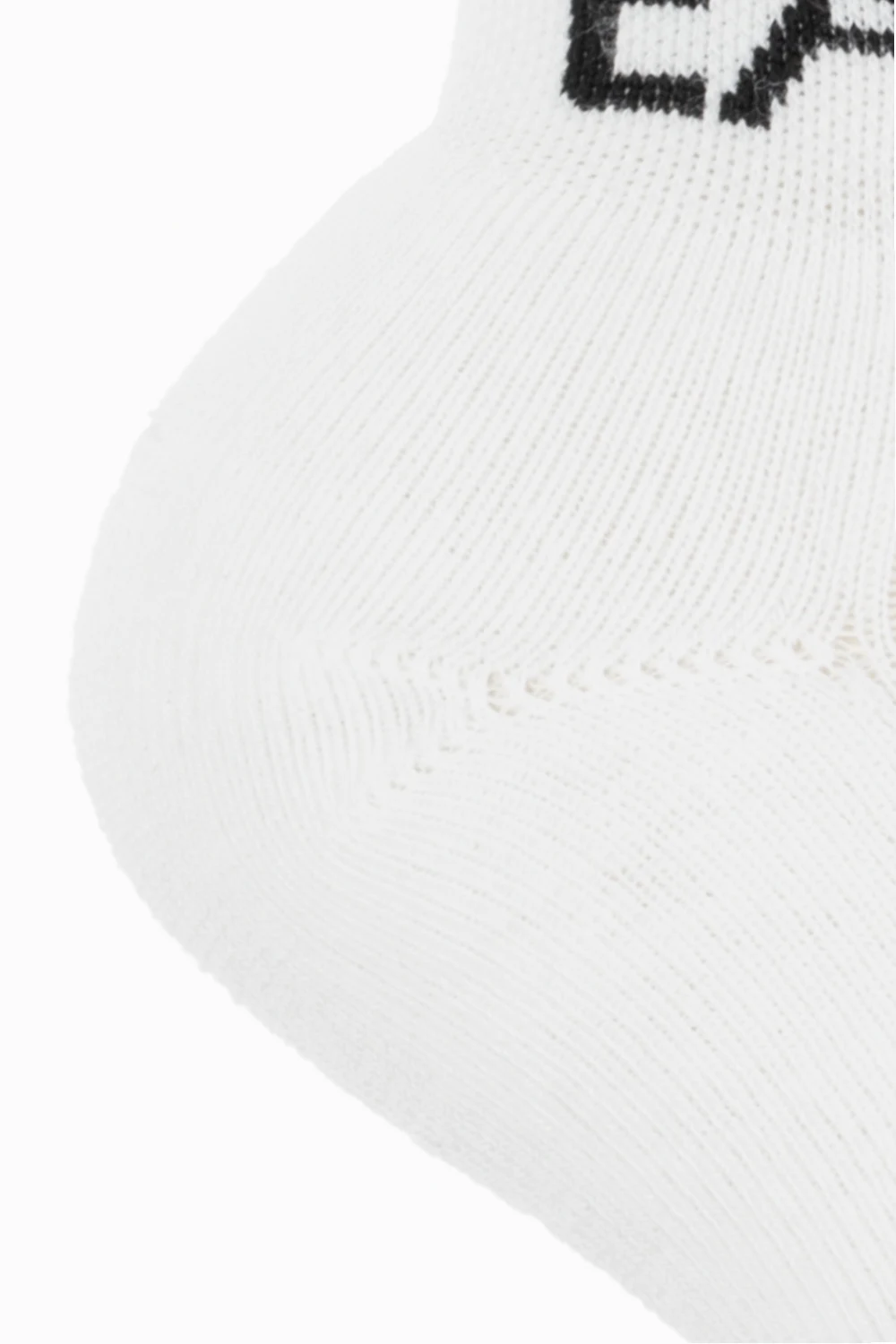 White low-cut socks from EA7 Emporio Armani featuring an embroidered black logo.