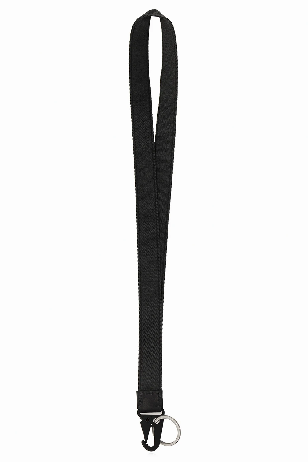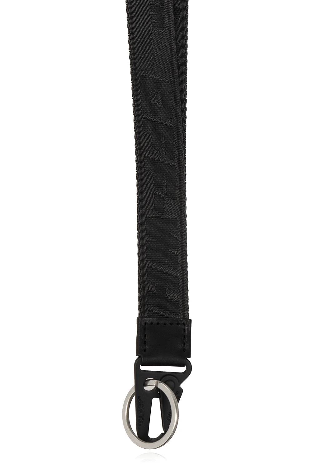 Black and yellow lanyard from Off-White. Trimmed with leather, this design features a logo embroidery, blue stitching and snap hook.