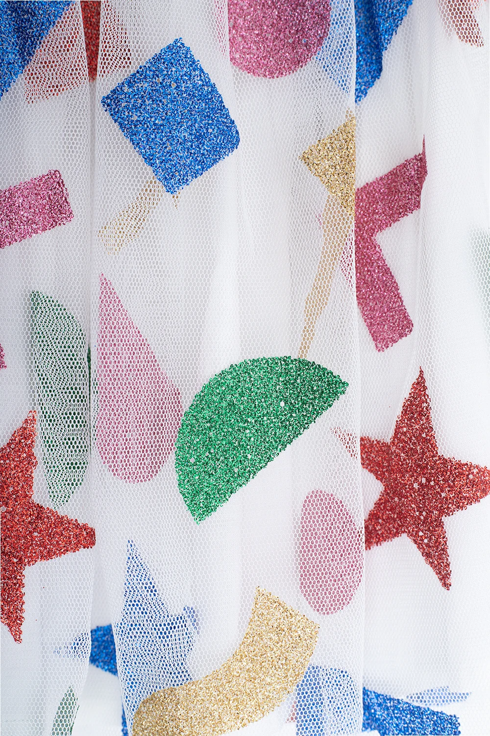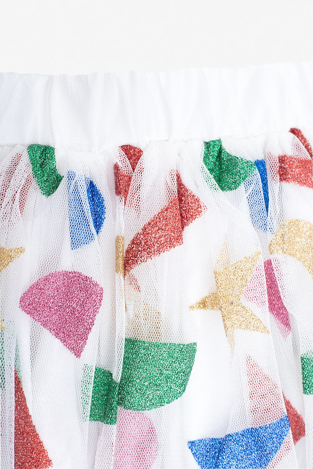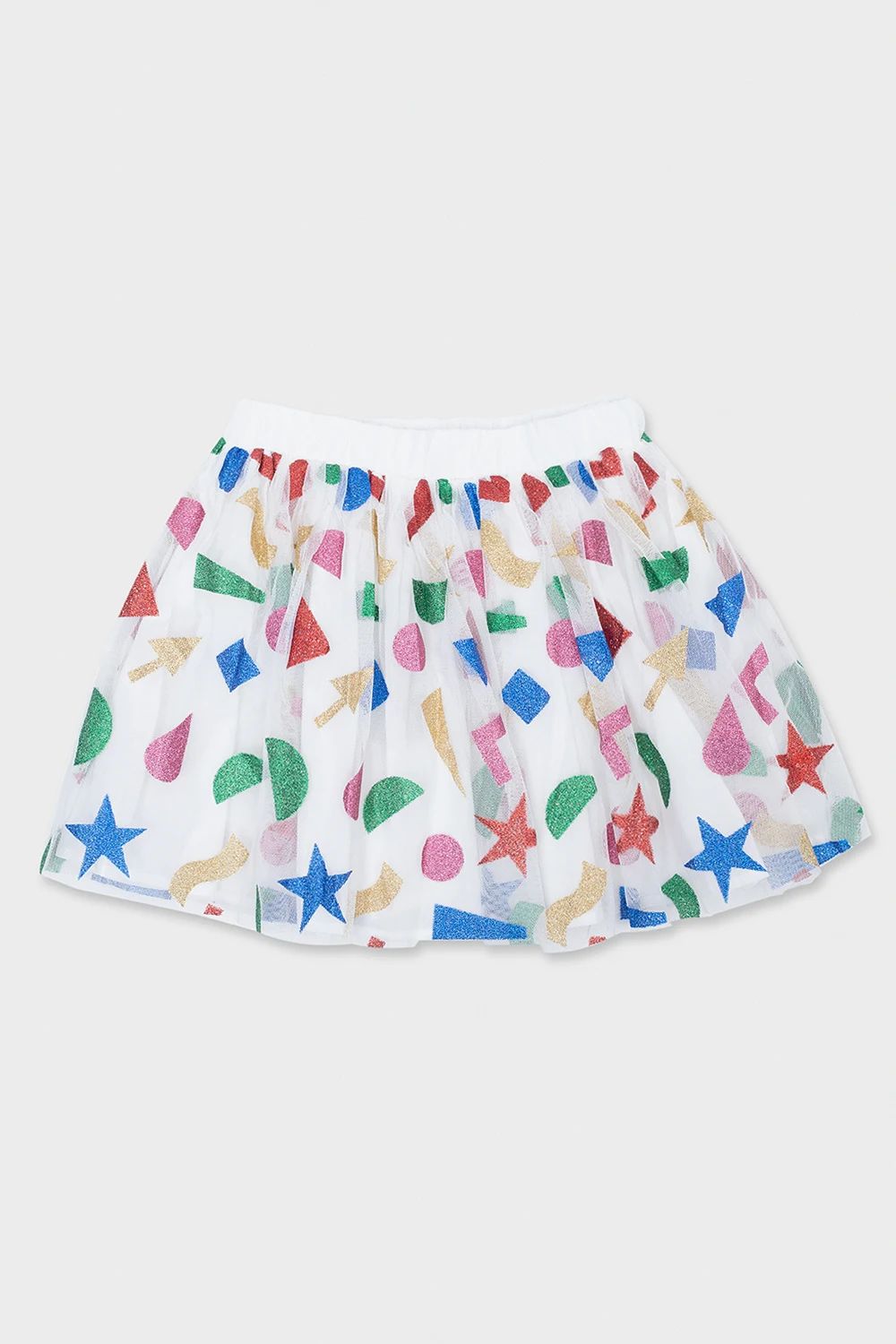 Multicoloured tulle skirt from Stella McCartney Kids. Embellished with glossy geometrical prints, this style features an elasticated waistband and a flared hem.