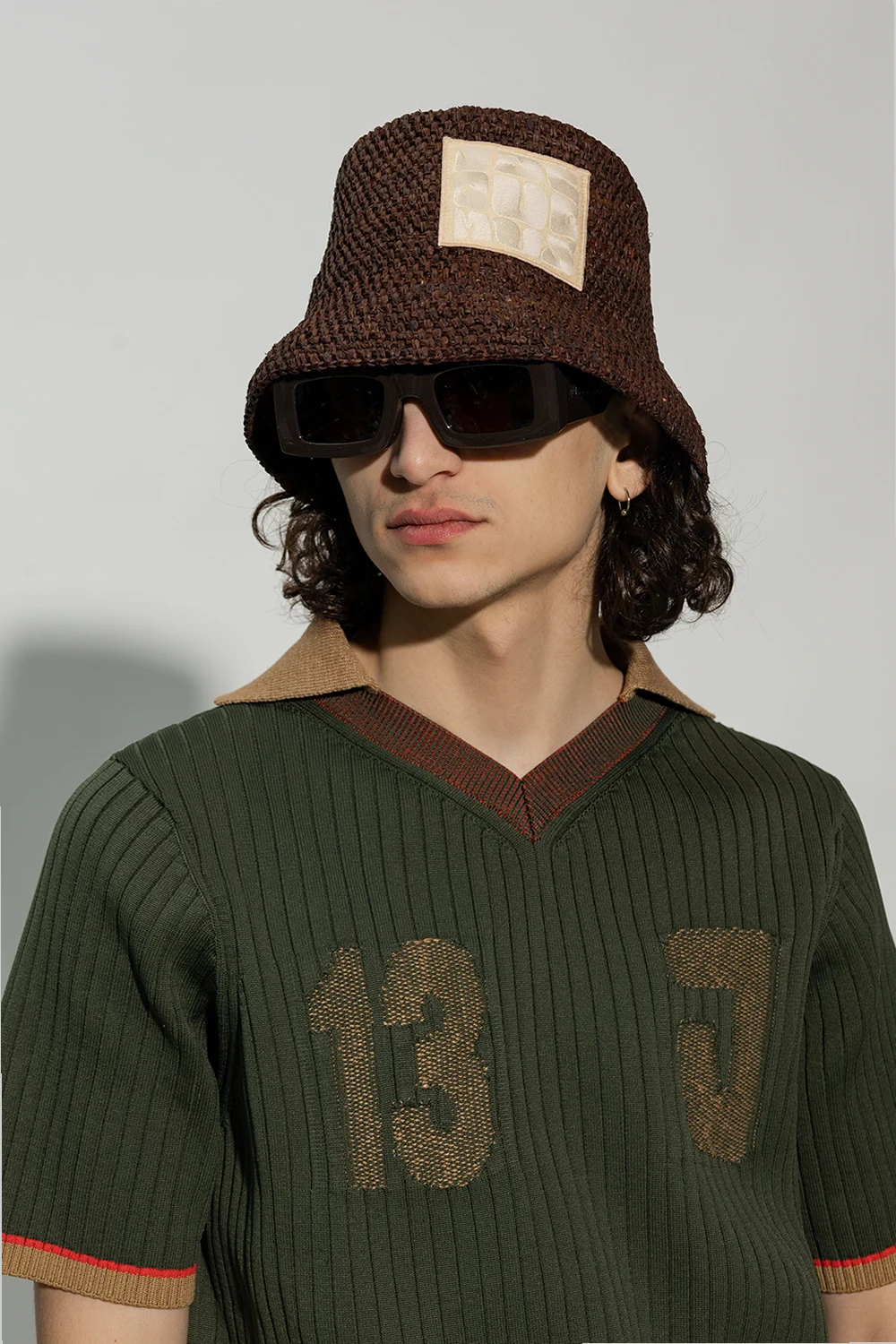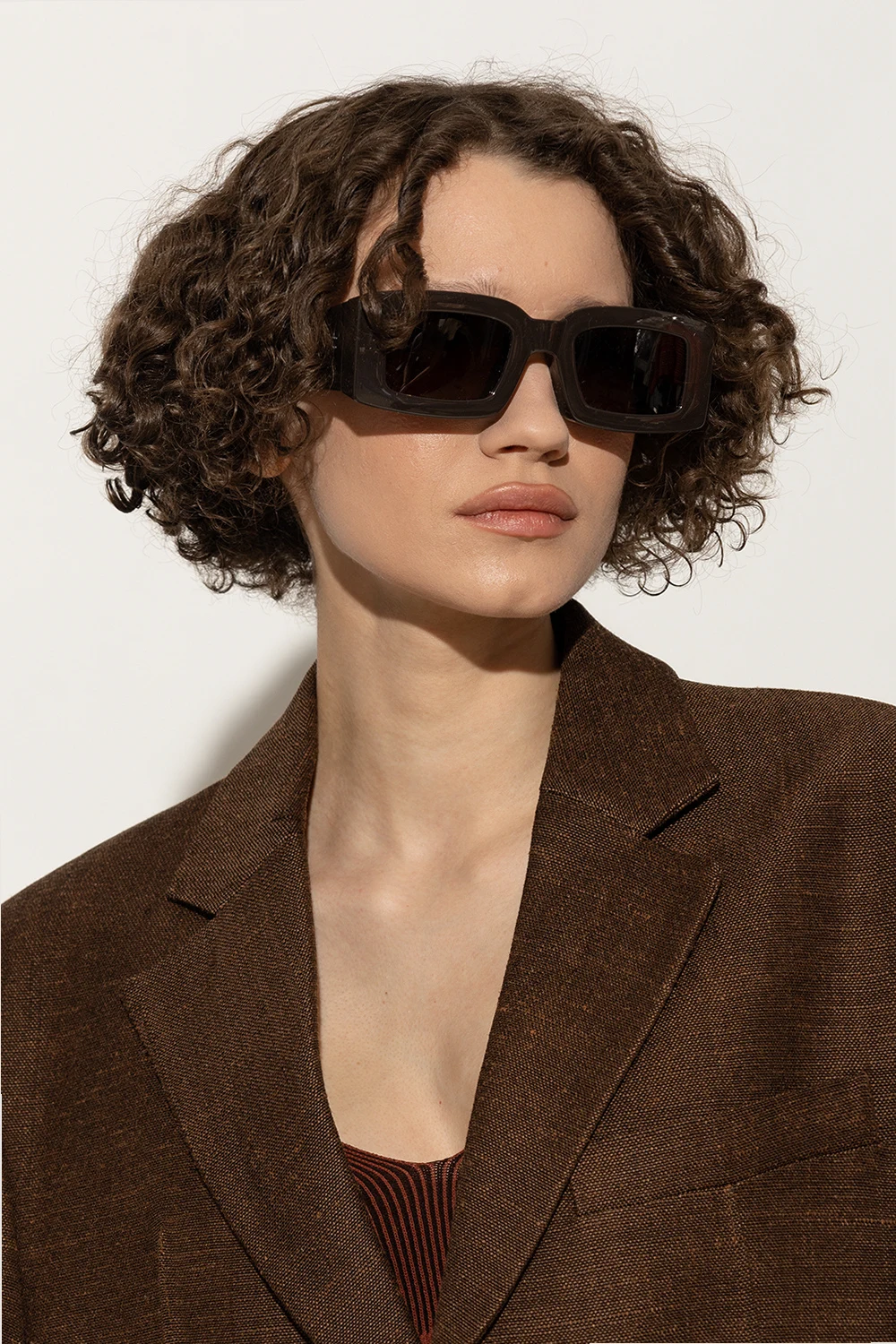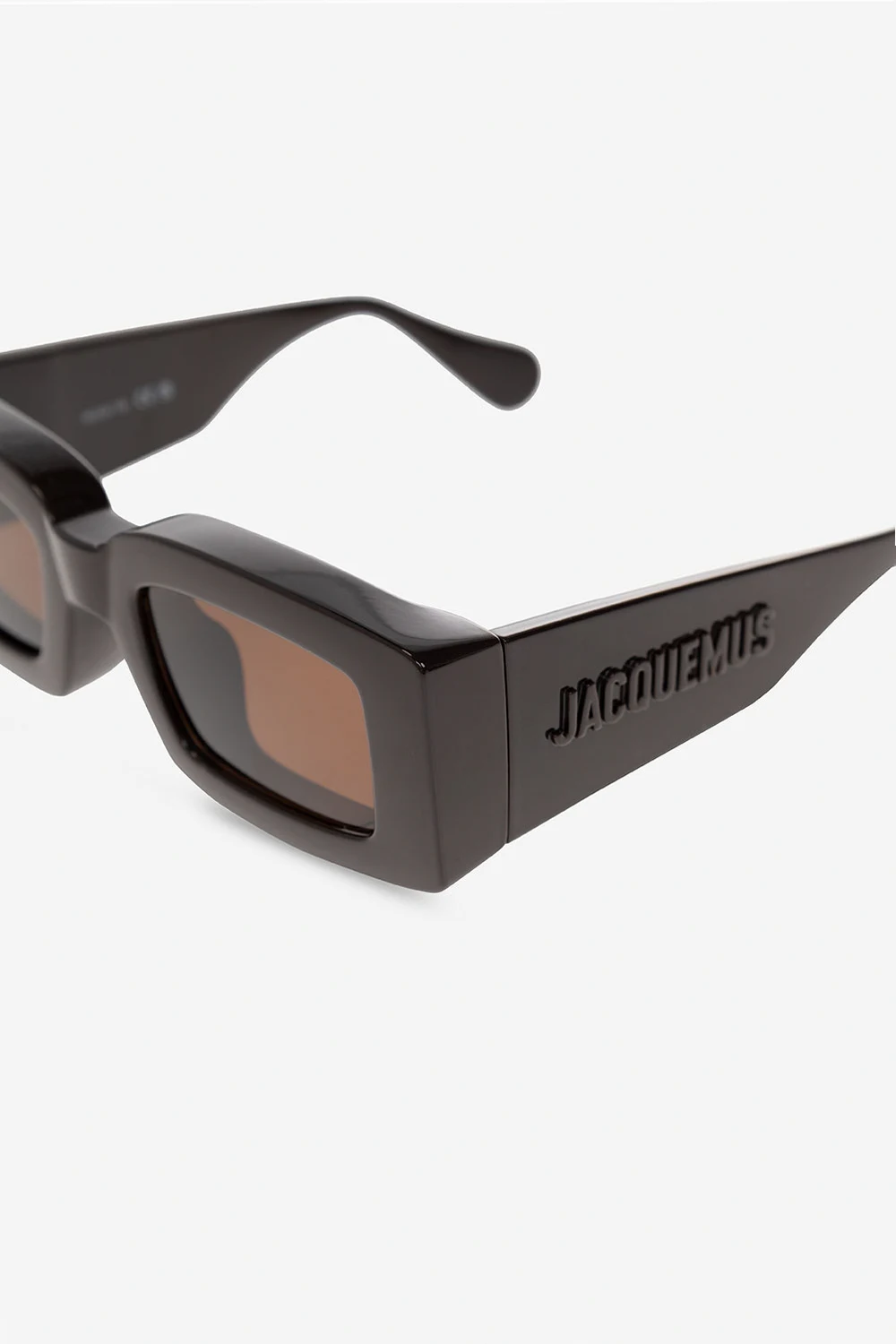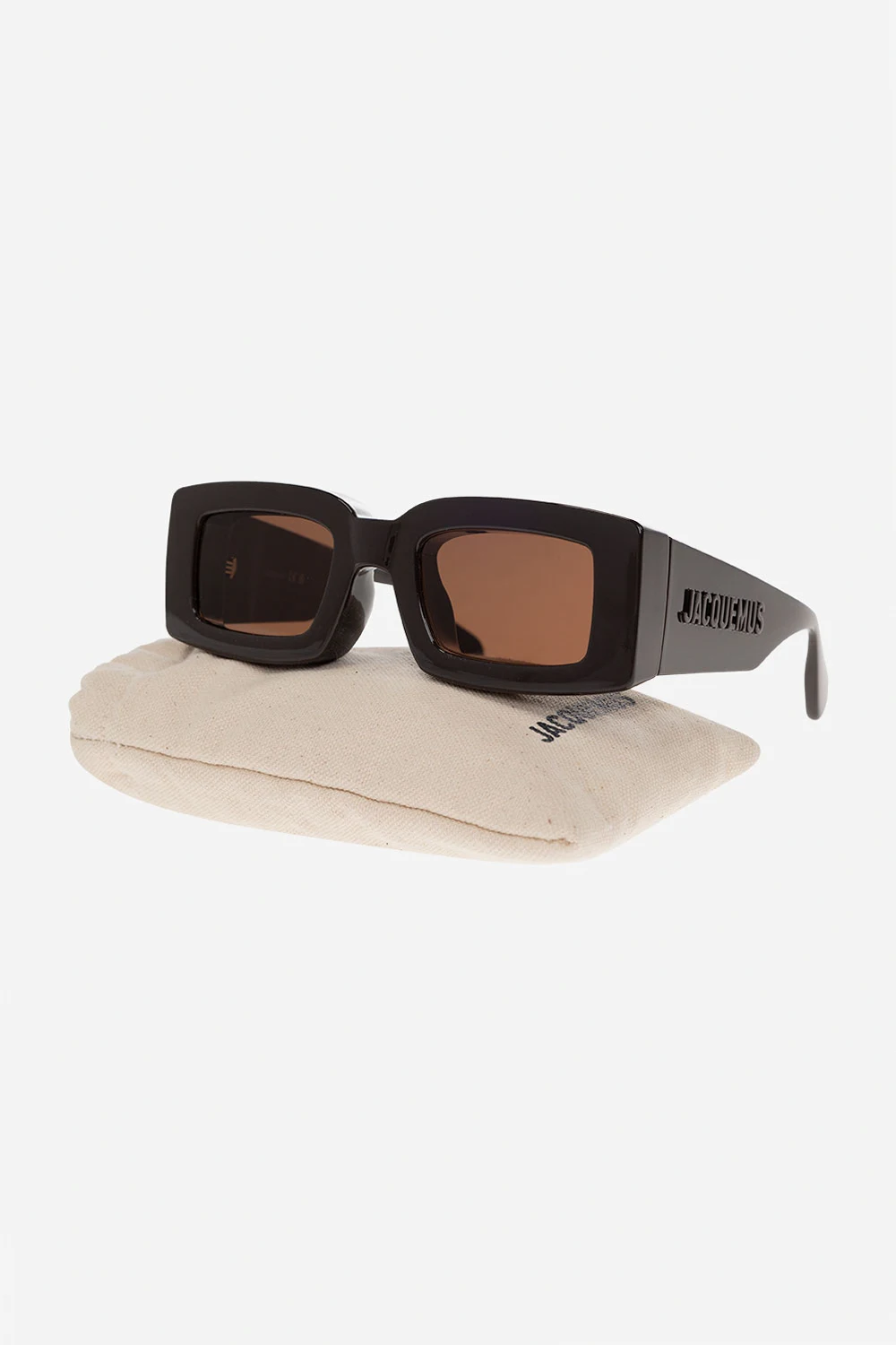 Dark brown ‘Tupi’ sunglasses from Jacquemus. Crafted from acetate with rectangular frames, this model features wide temples accentuated with logo plaques and brown lenses with 100% UV protection. Case included.