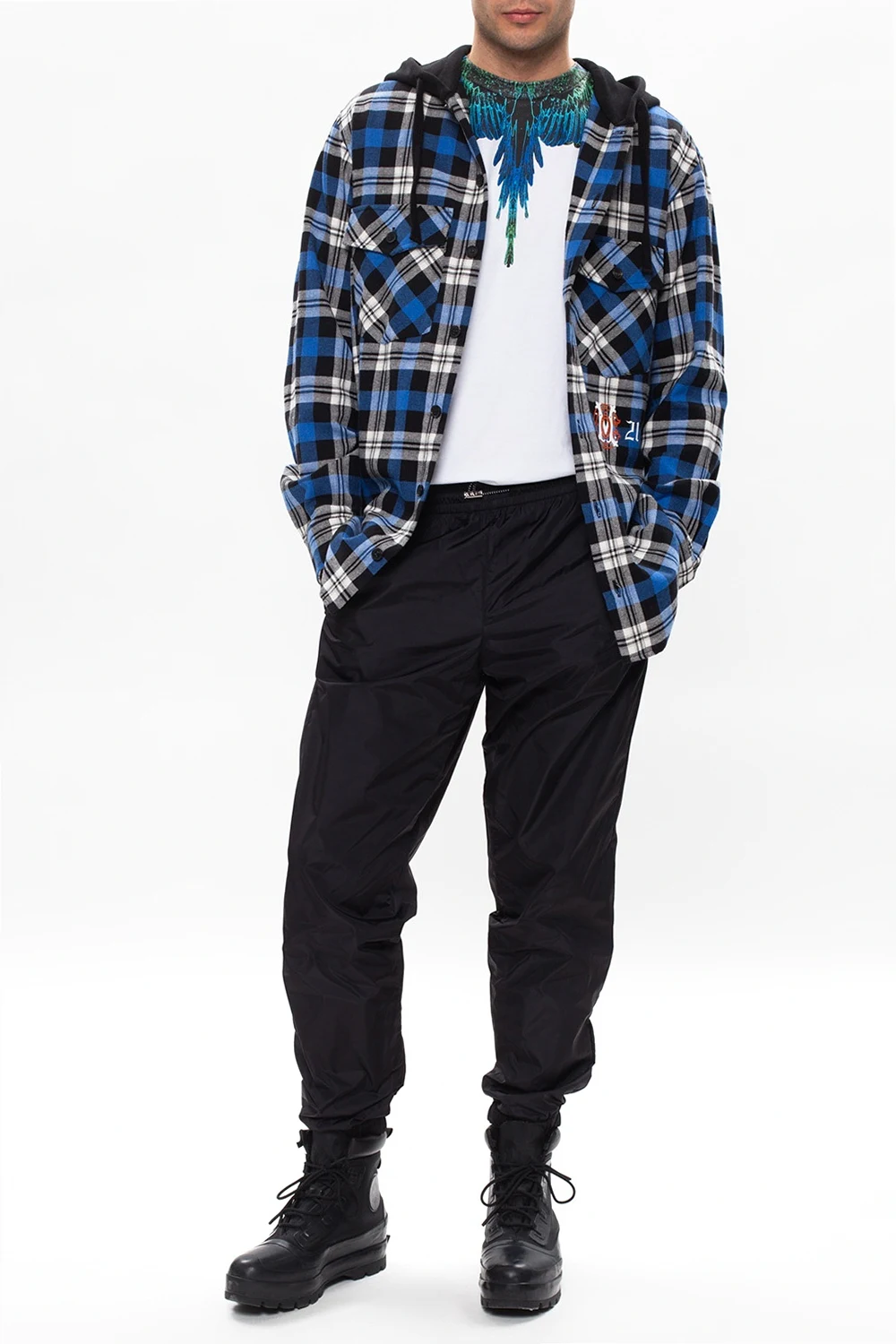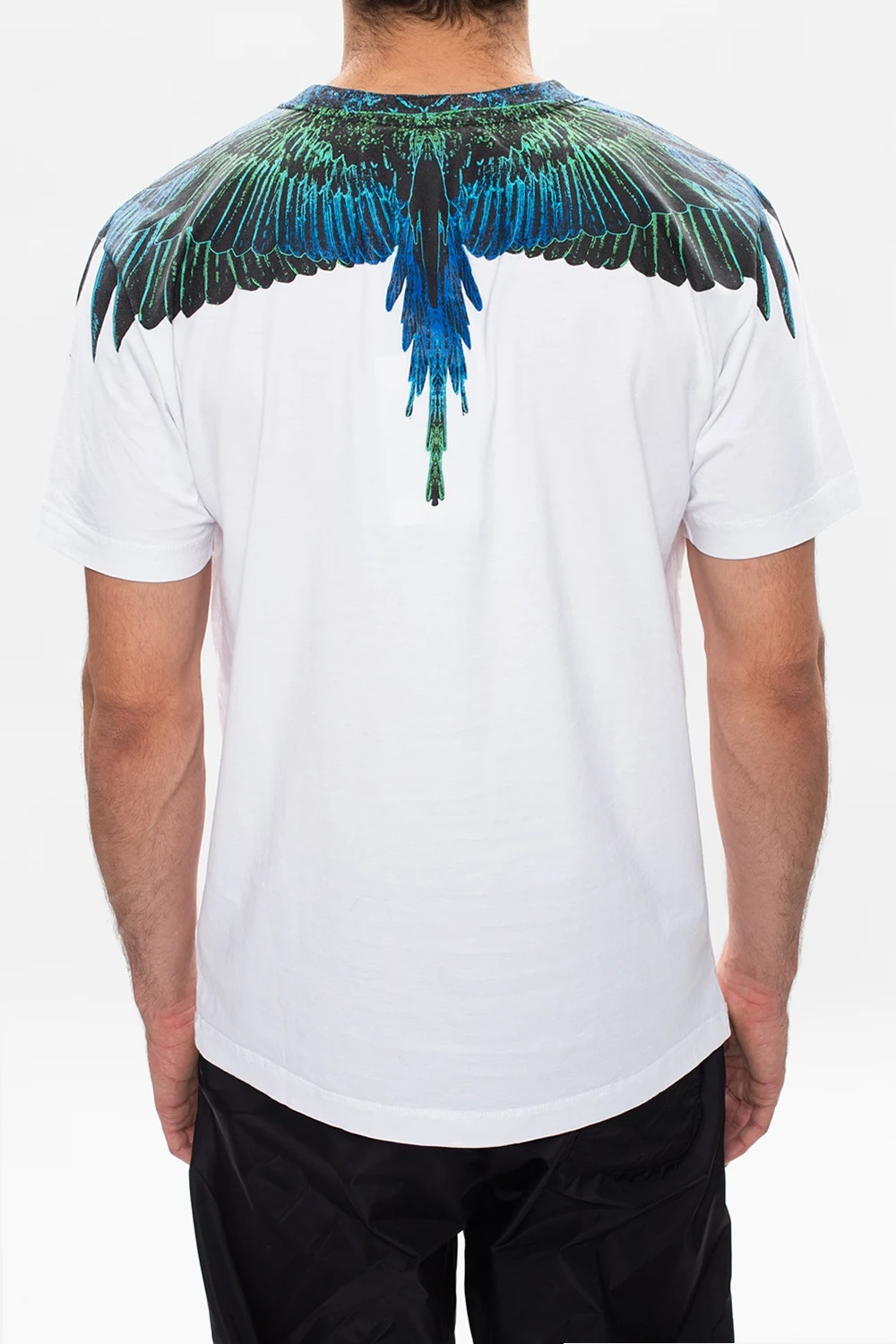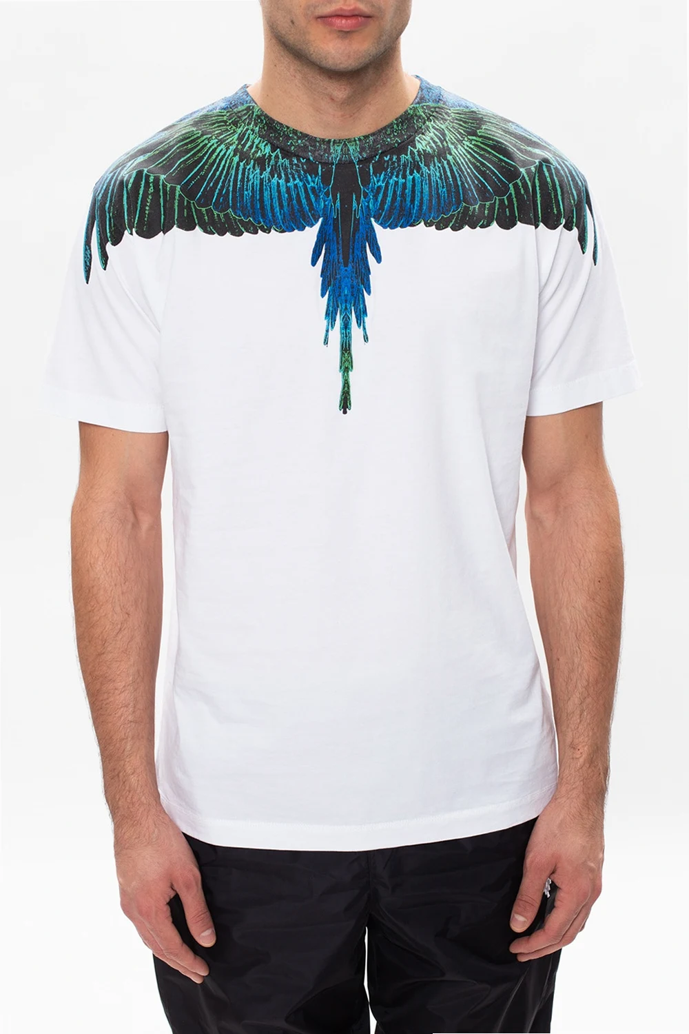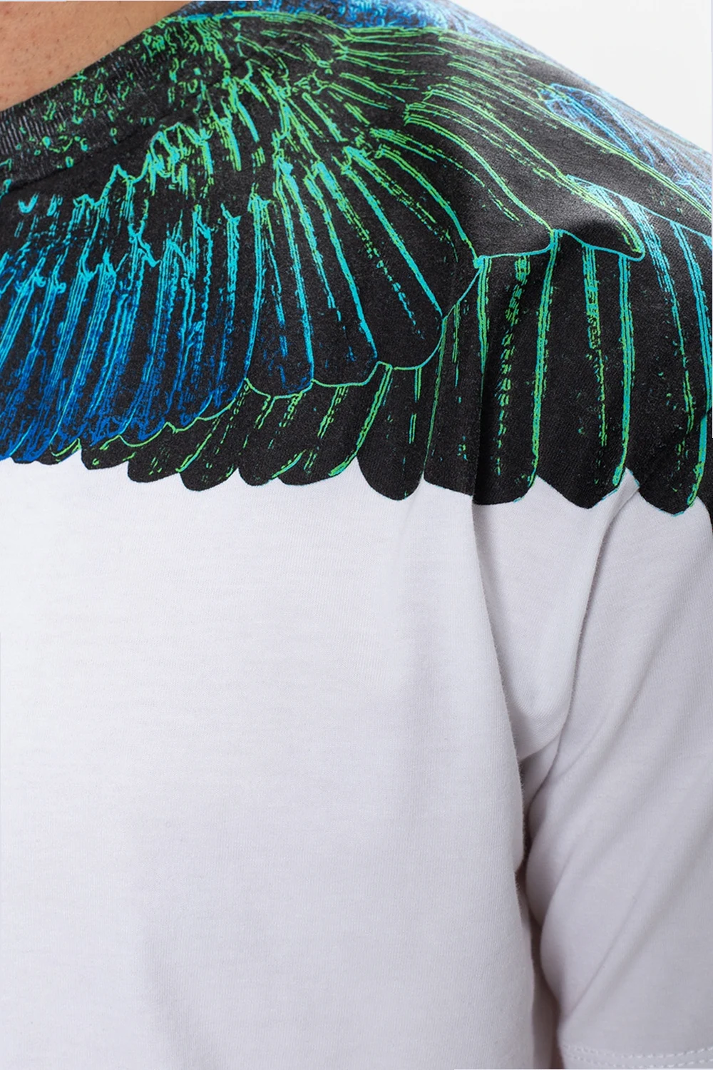 White crewneck T-shirt from Marcelo Burlon. Crafted from cotton, this design features a printed logo pattern in black, green and blue.