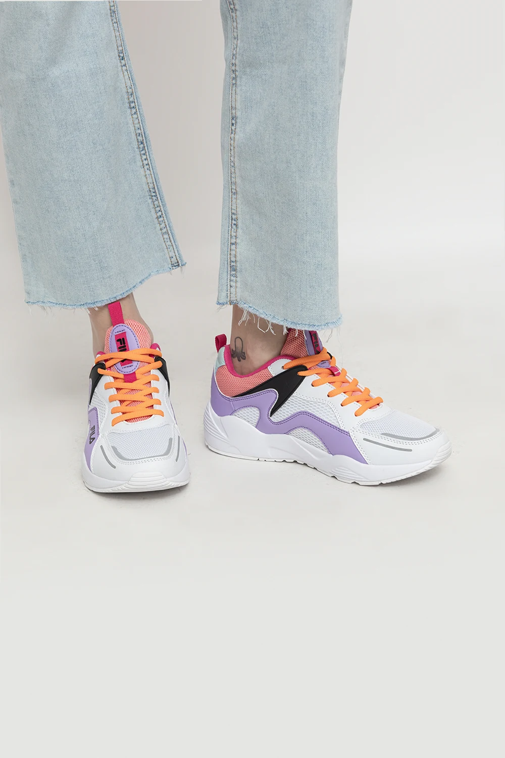 Multicoloured 'Flashbase' sneakers from Fila. Crafted from fabric with mesh trims to boost breathability, this lace-up model sits on a white rubber sole and features black logo prints. Swappable shoelaces included.