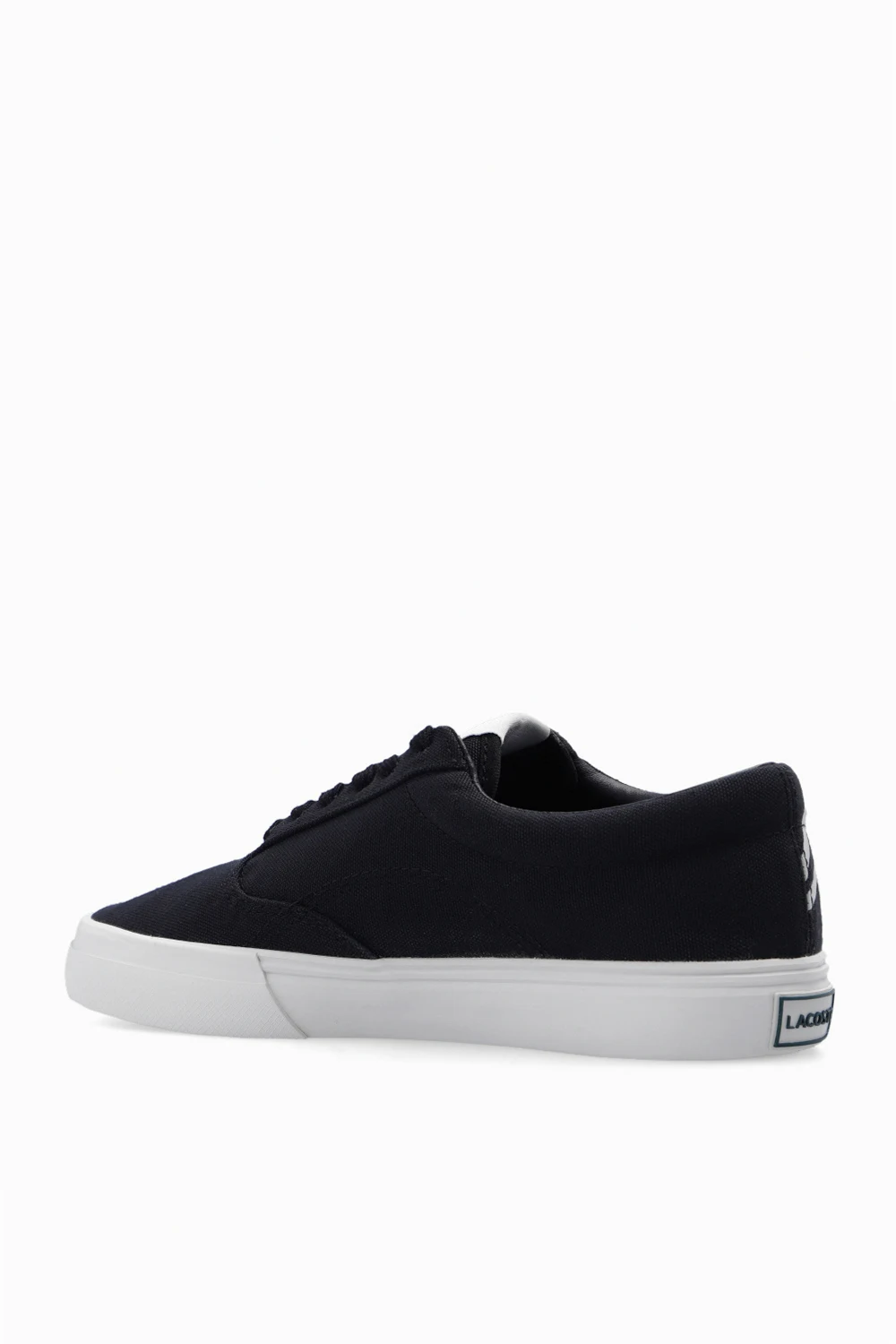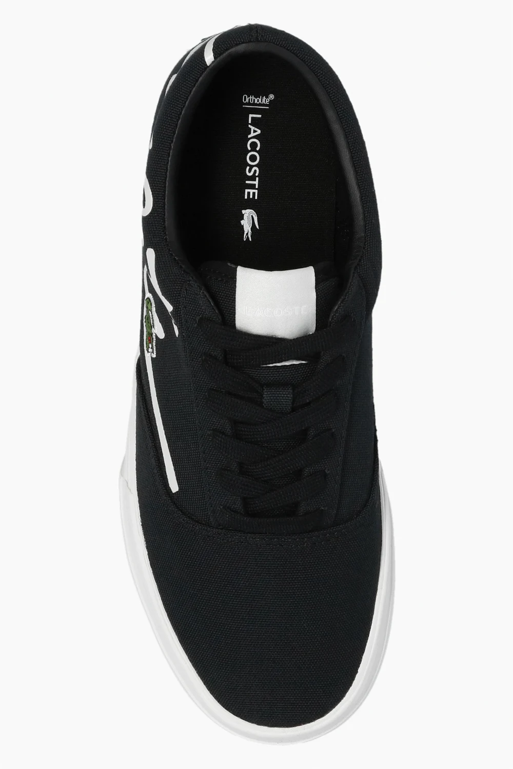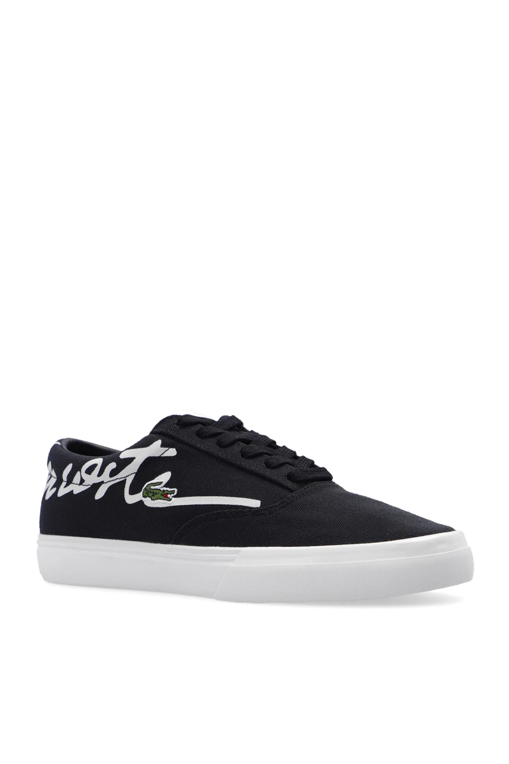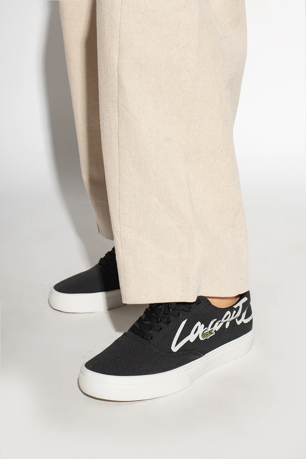 Black ‘Jump Serve Lace’ sneakers from Lacoste. Made of canvas embroidered with the label’s signature crocodile motif and trademark in the form of lettering print, this lace-up model features a white tongue patch with a logo, Ortholite® insole for increased comfort and a white rubber sole.