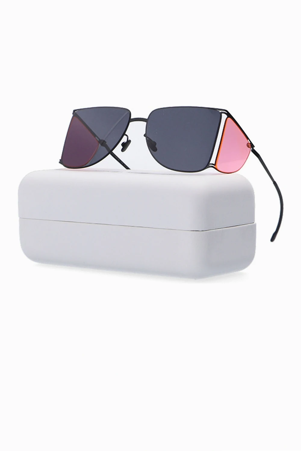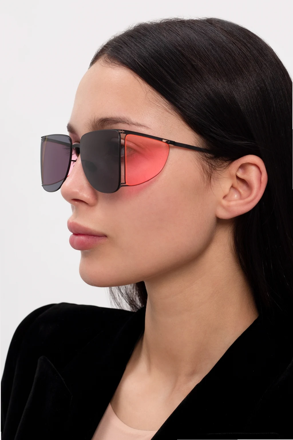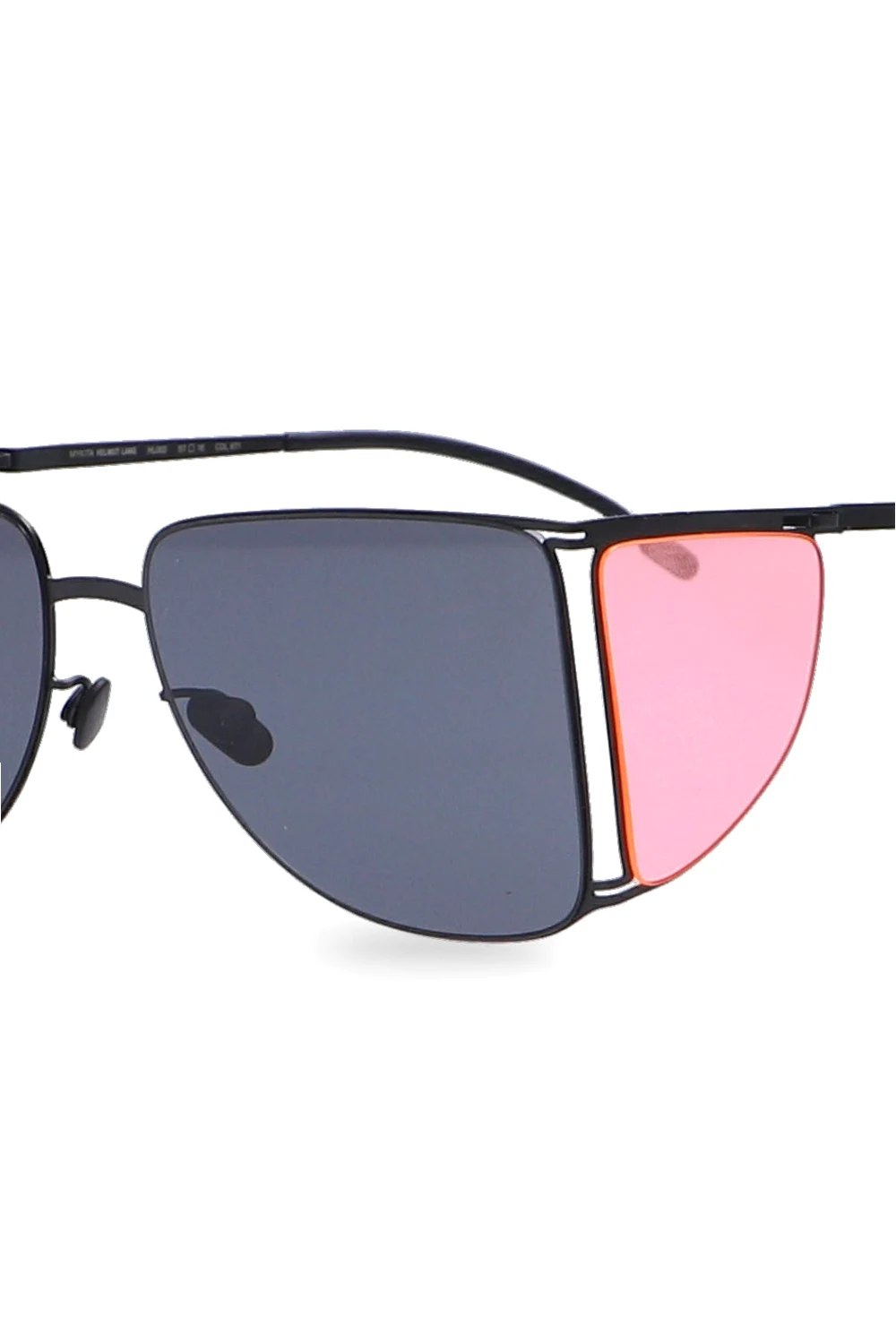 Black sunglasses from Mykita x Helmut Lang. Made of stainless steel. Grey, purple and pink lenses with UVA/UVB protection. This item comes with a case.