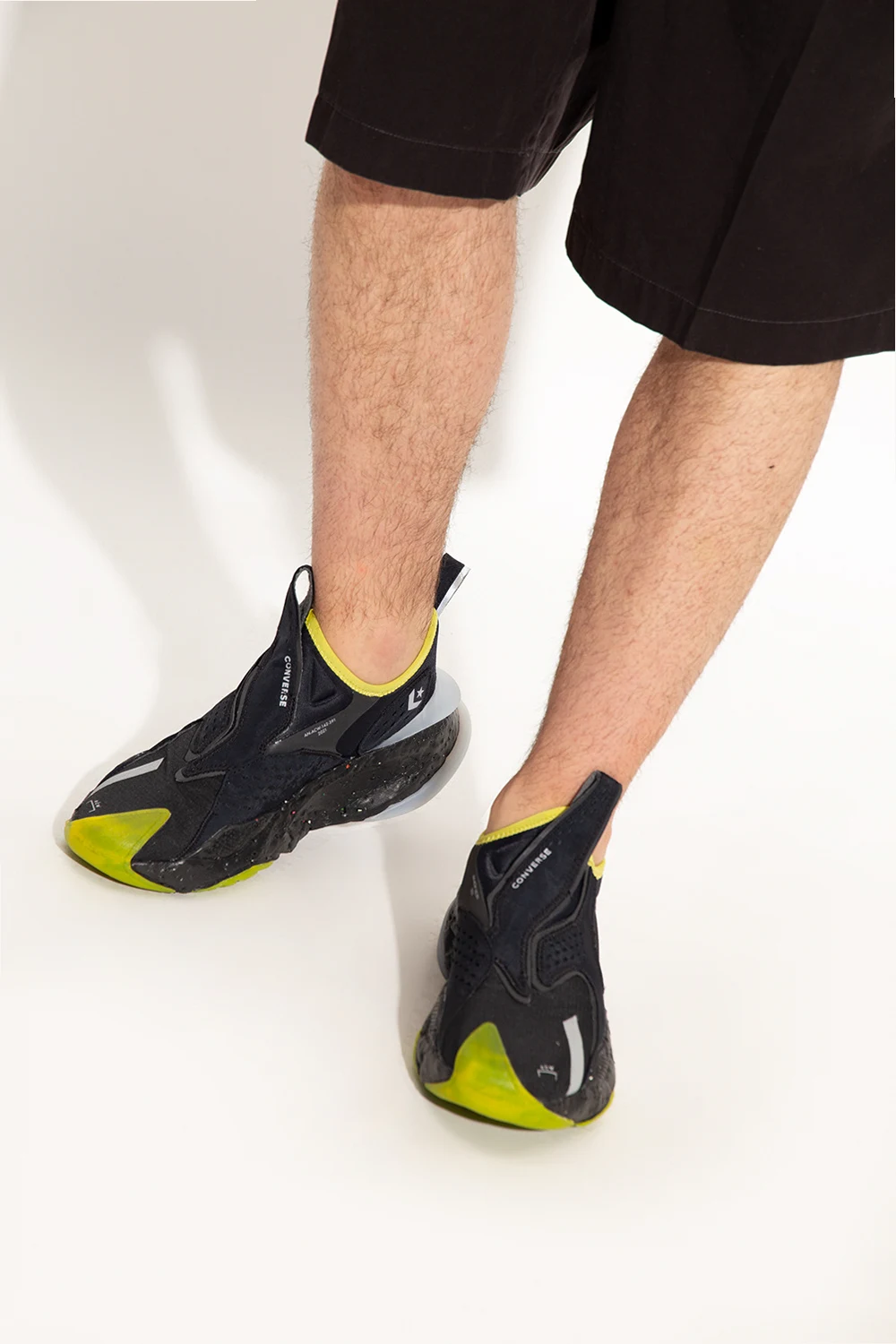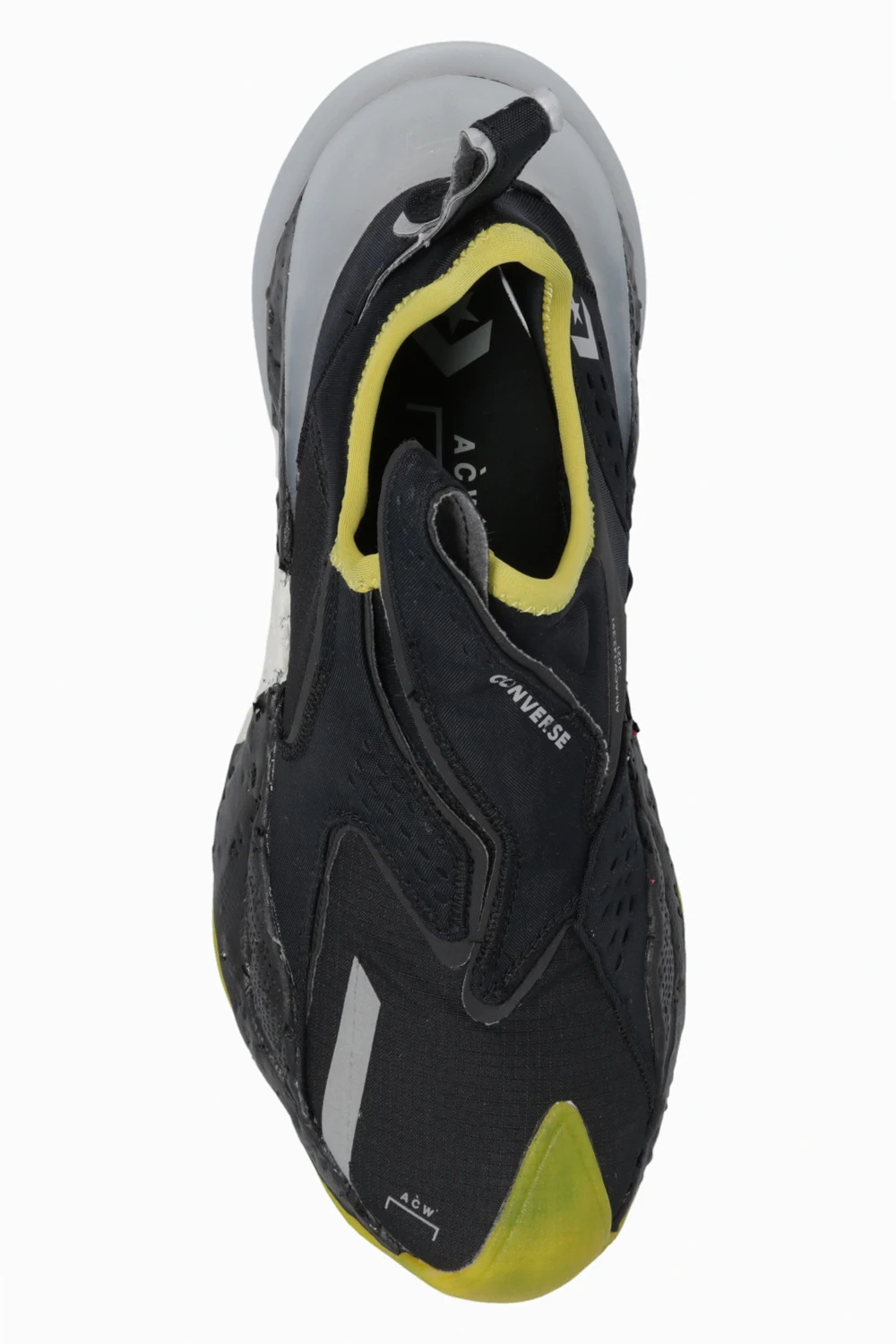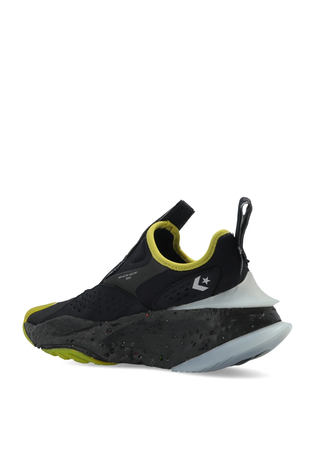 Black, grey and green ‘Aeon Active CX’ sneakers from Converse x A-COLD-WALL*. Sitting on a black, red and green rubber sole, this model features a slip-on silhouette with distinctive logo inserts.