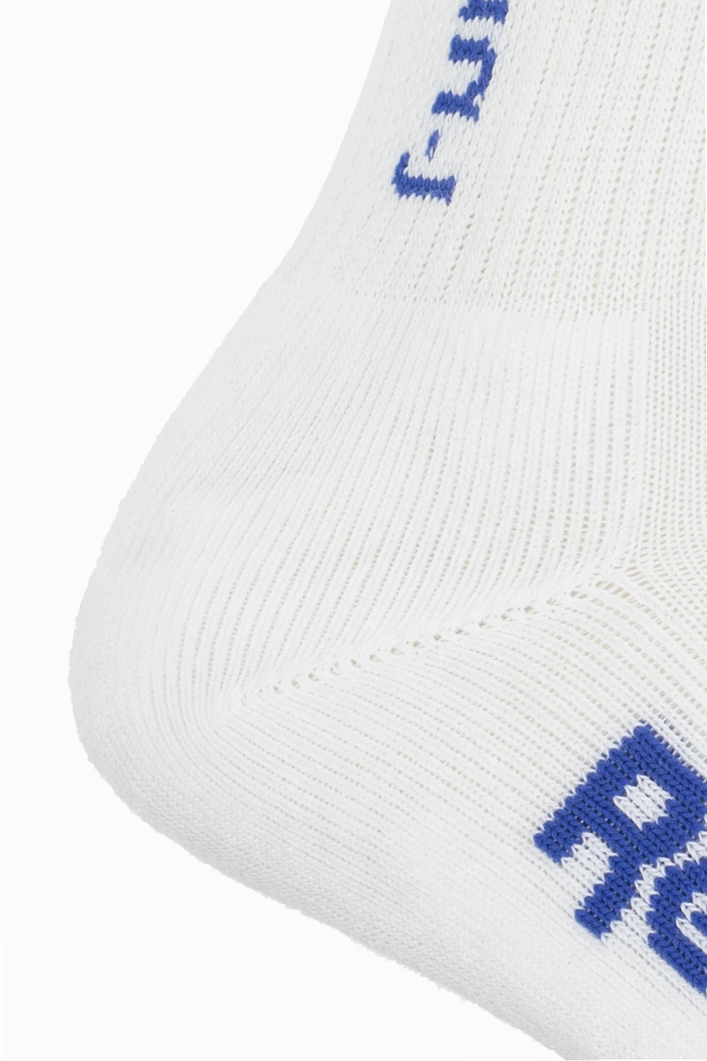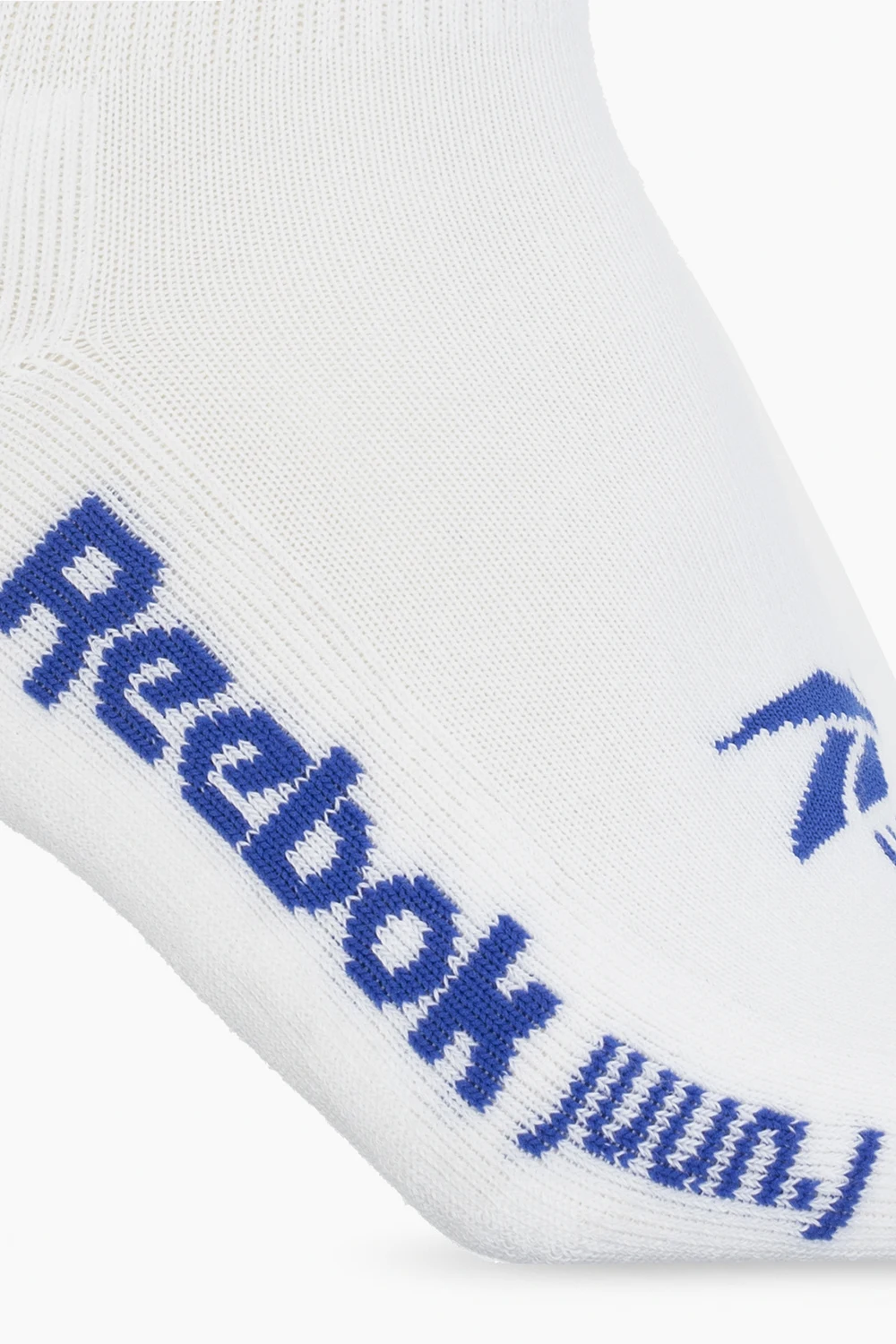 White ribbed socks from Reebok x Juun.J. Crafted from cotton, this pair is decorated with a navy logo embroidery.
