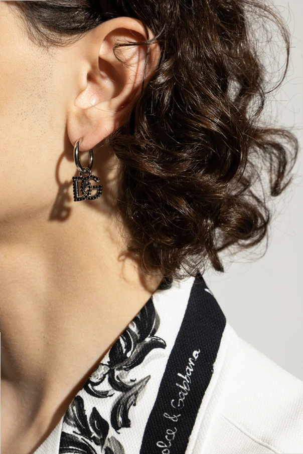 Ohrringe mit Anhängern in Logoform sind die Essenz von Raffinesse und zeitgenössischer Kunstfertigkeit, geschaffen von den Designmeistern – Dolce & Gabbana . Die klassische, runde Basis des Ohrrings geht fließend in einen beweglichen Anhänger über, der die verschlungenen Initialen „DG“ präsentiert, ein Symbol kompromisslosen Luxus.