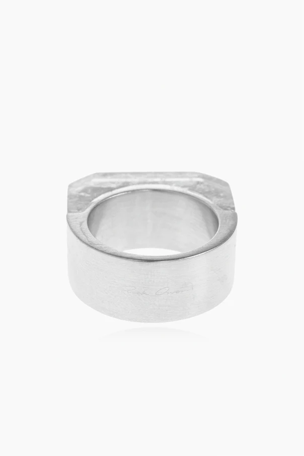 Messingring aus der Feder von Rick Owens ist ein Ausdruck modernen Minimalismus und raffinierter Formgebung. Die markante, geometrische Silhouette mit leicht rechteckigem Korpus und flachen Flächen, die sanft abgerundete Ecken aufweisen, verleiht ihm einen einzigartigen, designorientierten Charakter .