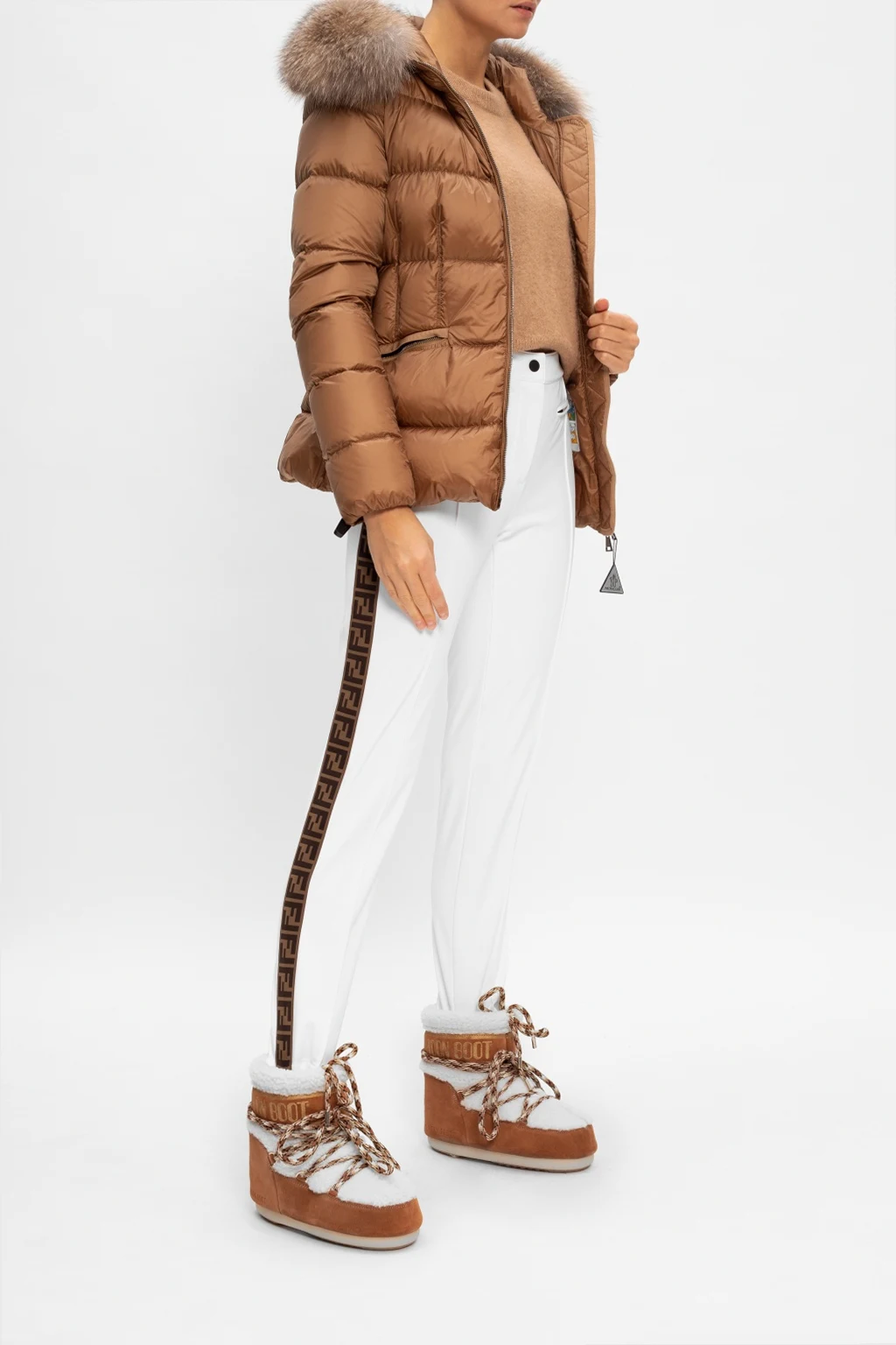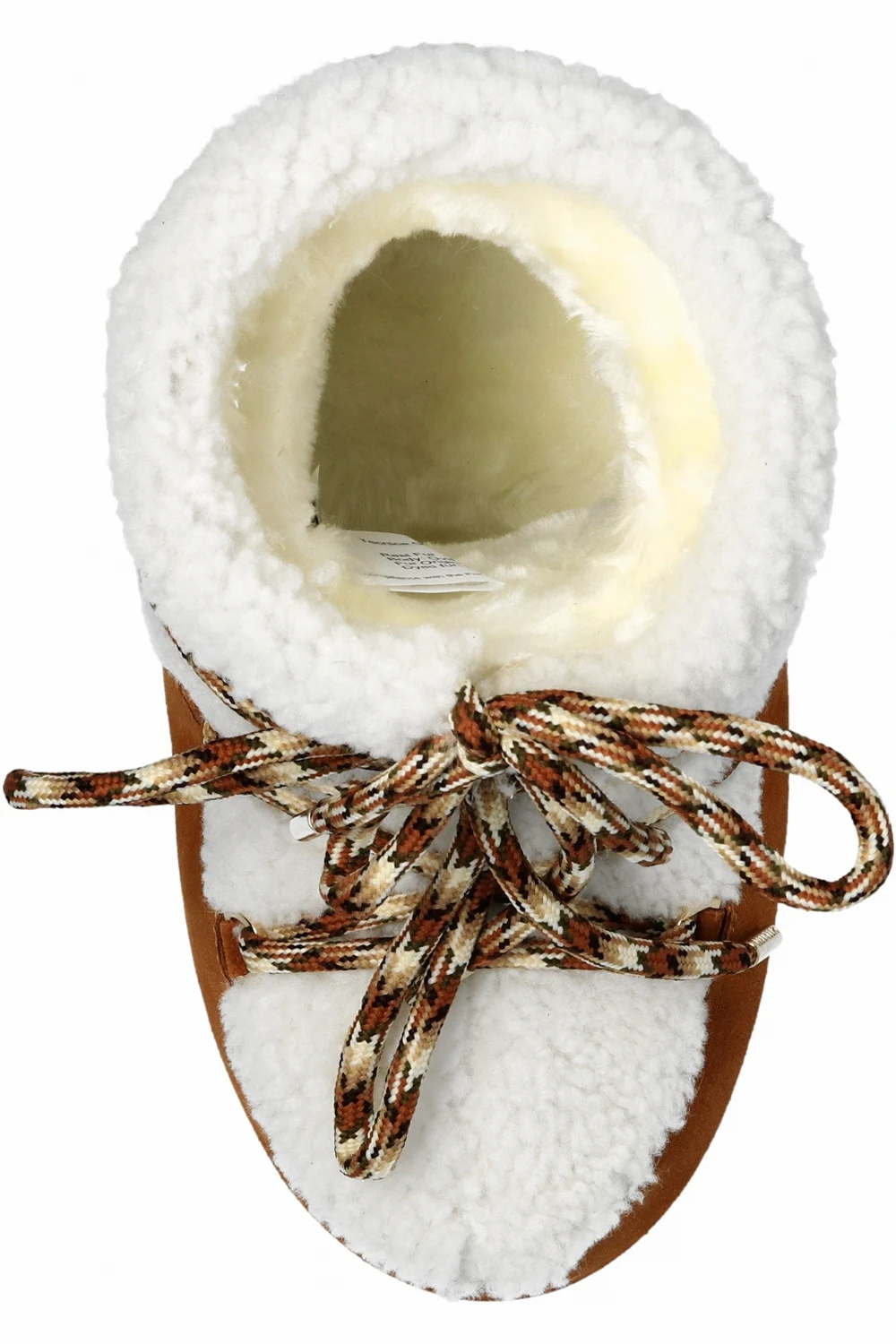 Light brown ‘Mars Shearling’ snow boots from Moon Boot. This lace-up design is crafted from suede and shearling, and complete with a gold-tone logo detail, gold-tone metal hardware and a rubber sole in light brown and beige. Inspired by the peculiar shape and technology of the astronauts’ boots, the iconic style was designed in 1969 after the first Moon landing.